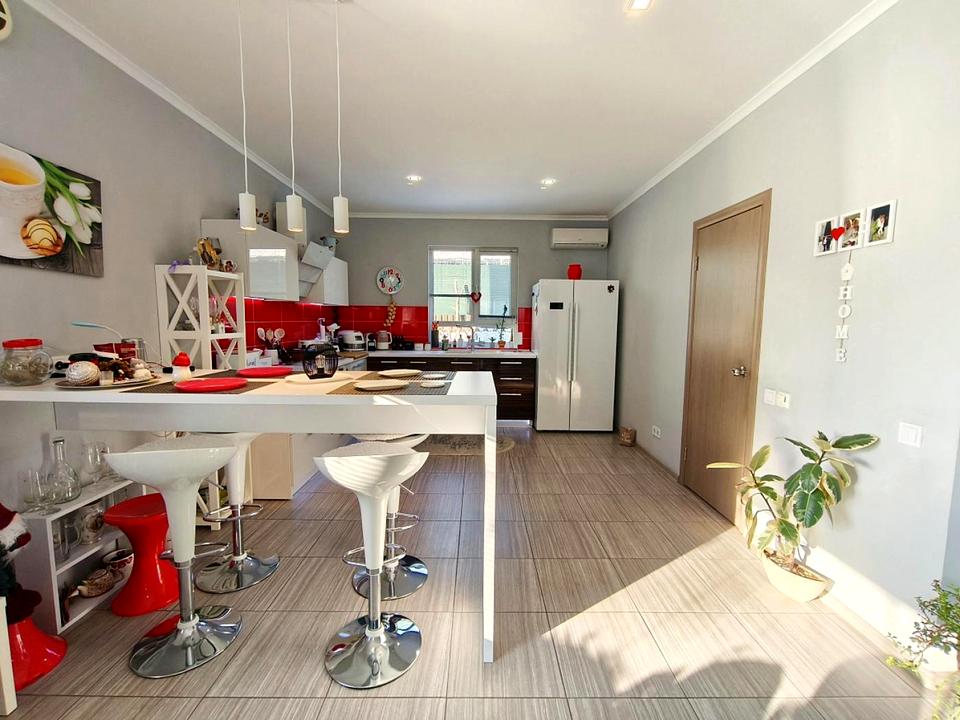 Будинок повністю готовий для проживання. Зроблений якісний ремонт, укомплектований меблями і побутовою технікою. У просторій кухні-вітальні встановлений КАМІН, тому навіть в найхолодніші дні в будинку тепло і затишно. Також змонтована тепла підлога, встановлені кондиціонери і систем очистки води.