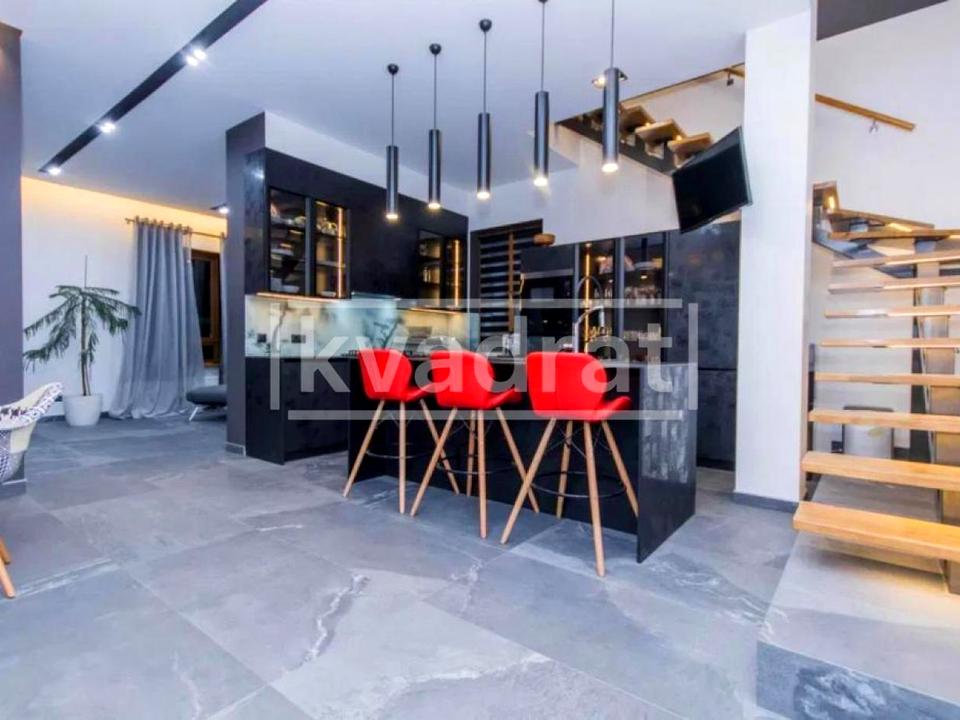 Новий стильний Хай Тек будинок у Горенці! Використані високоякісні матеріали та сучасні технології. Система розумного будинку, керування опалювальною системою з мобільного додатку. Загальна площа 180 кв. м. Перший поверх - відкрите планування, зона кухні з величезним островом, зона їдальні, зона вітальні з каміном. Також на першому поверсі розташована бойлерна - пральня, комора та санвузол із душовою кабіною. Другий поверх – 3 спальні, санвузол з ванною, 2 балкони. Теплі підлоги, еко-будинок з економічною витратою електроенергії та газу. Будинок оснащений високоякісною німецькою та італійською технікою. 3 телевізори, посудомийна та пральна машини, духовка, мікрохвильова піч, газова п'ятиконфоркова плита, кондиціонери у всіх кімнатах. Упорядкований двір з ландшафтним дизайном та автоматичною системою поливу. Повністю автономний будинок! Власна свердловина, септик, безперебійна система електропостачання, що складається з акумулятора 6 кВт, інвертора 6 кВт, сонячних панелей 6 кВт/годину та бензинового генератора 8 кВт. У дворі кострова, зона мангалу, тераса. Парковка на 3 автомобілі, електричні ворота. Охоронна сигналізація за піриметром – Сіріус.