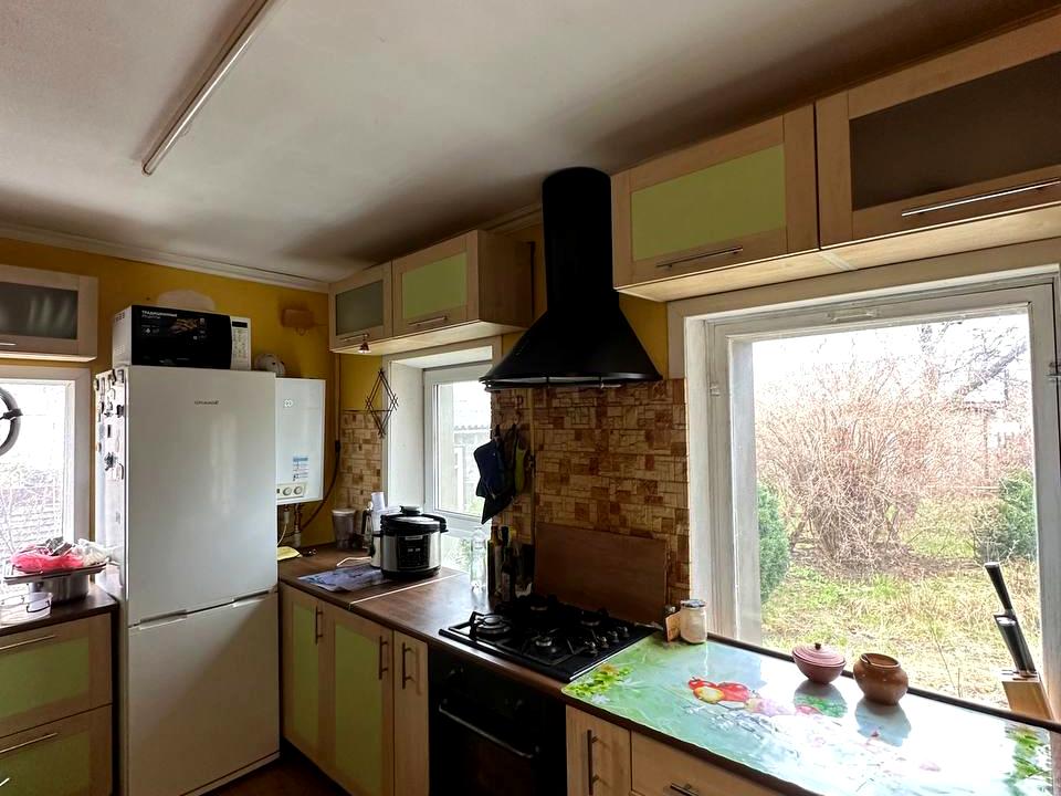 Будинок, 1 поверх, 4 кімнати. Матеріал стін - цегляний. Під'їзд до будинку - асфальт. Площа ділянки 12 соток. Покриття підлоги: покриття підлоги - ламінат. В будинку немає балконів. Тип кухні - окрема кухня. Немає підвалу. У будинку є Телевізор, Праска, Пральна машина, Душова кабіна, Холодильник, Мікрохвильовка, Посуд, Автополив, Газон, Сад/город, Зона мангалу, Гараж. Своя каналізація. Загальний стан будинку - З ремонтом. Газ природний. Холодна вода - свердловина. Гаряча вода - газова колонка. Опалення котел газовий. Кількість санвузлів: 1. Інтернет оптоволоконний. Працює без світла - вода, газ, опалення, інтернет. Кількість паркомісць: 2. Кухонна плита газова. Кількість спален: 3. Комісія за послуги 50 %