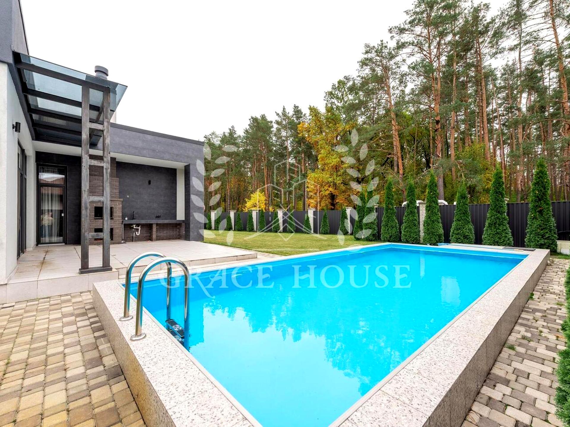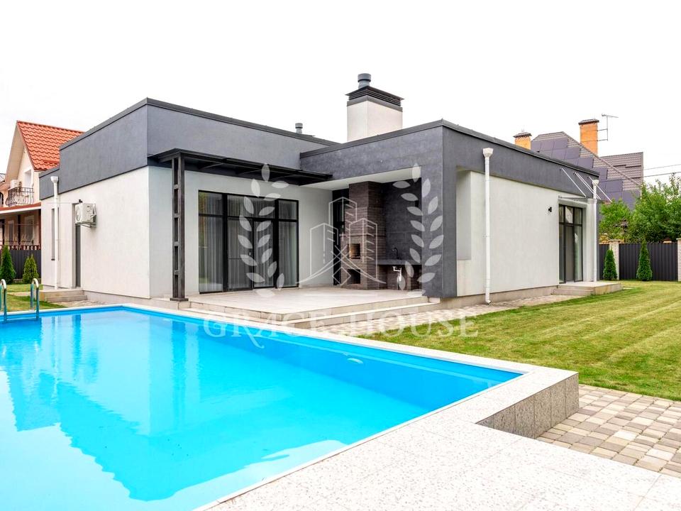 Будинок, 1 поверх, 4 кімнати. Площа ділянки 10 соток. У будинку є Автополив, Газон, Сад/город, Зона мангалу, Тераса, Басейн. Загальний стан будинку - З ремонтом. Кількість спален: 3. Без комісії