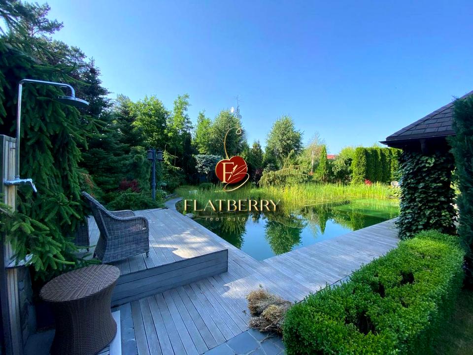 Большая территория с ландшафтным дизайном в 23 сотки (+10 соток находится в лесополосе, детская площадка); 7 зон отдыха: теннисный стол; беседка барбекю/гриль/камин с выходом на озеро/пруд/бассейн - глубина ступеней 1.10 / 1.50 / 2.20 м; 110 м3 воды; длина - 10 м и ширина - 3 м, летний душ на улице и т.д. 15 зон с системой полива. Уличное ночное освещение.