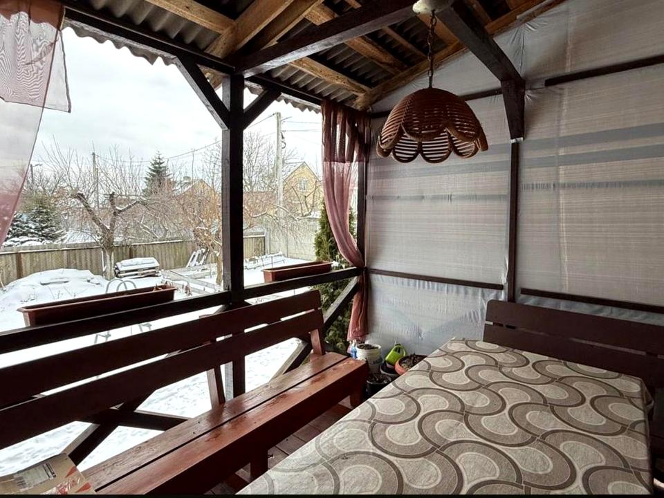 Власний дворик із фруктовими деревами, веранда з великим обіднім столом, мангал для теплих вечорів, каркасний басейн для літнього відпочинку.