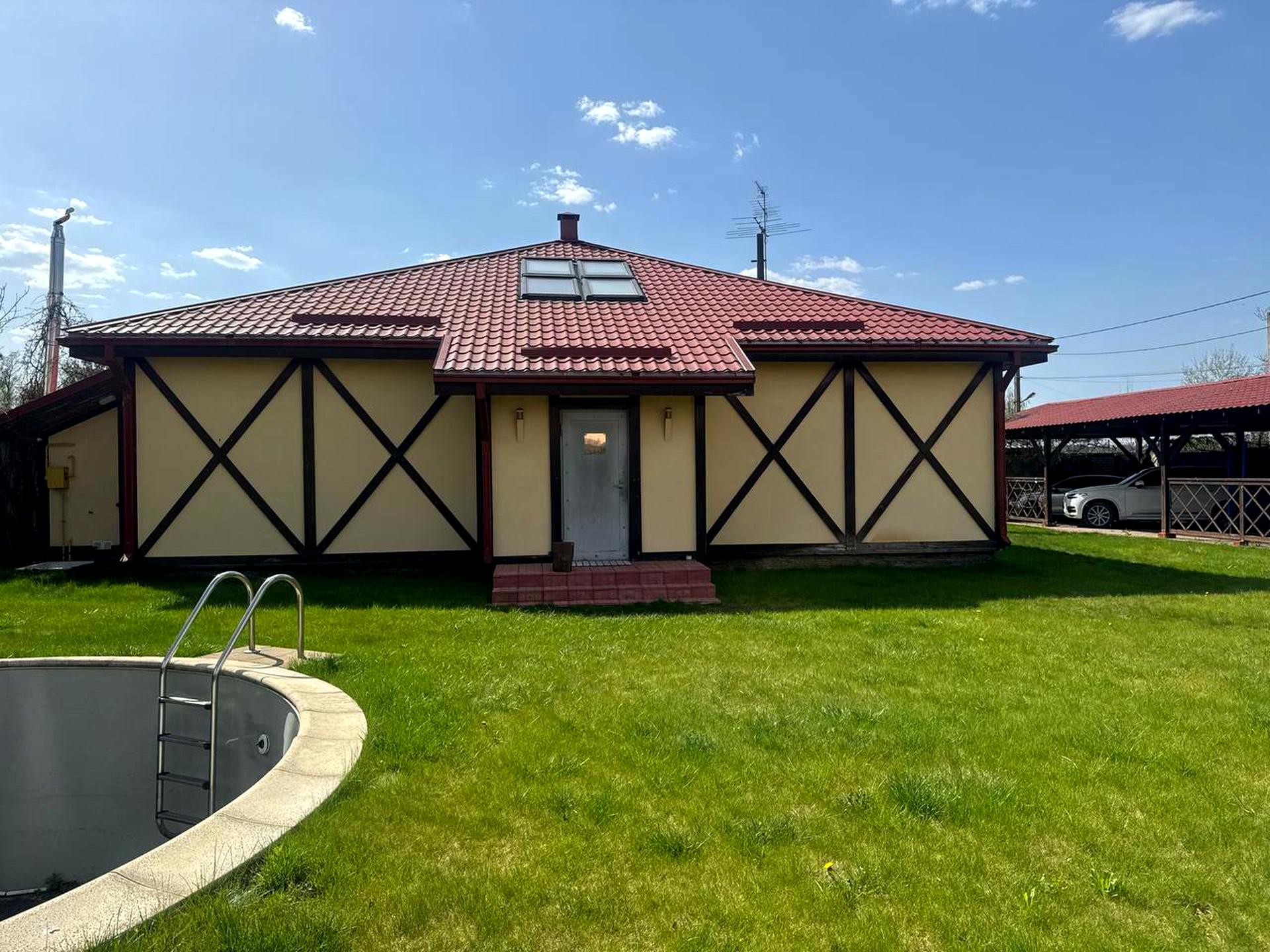 Будинок, 1 поверх, 1 кімната. Площа ділянки 9 соток. Планування кімнат Суміжне. У будинку є Підігрів підлоги, Ванна, Автополив, Зона мангалу, Бесідка, Басейн. Загальний стан будинку - З ремонтом. Працює без світла - резервне живлення (акумулятори/генератор). Без комісії