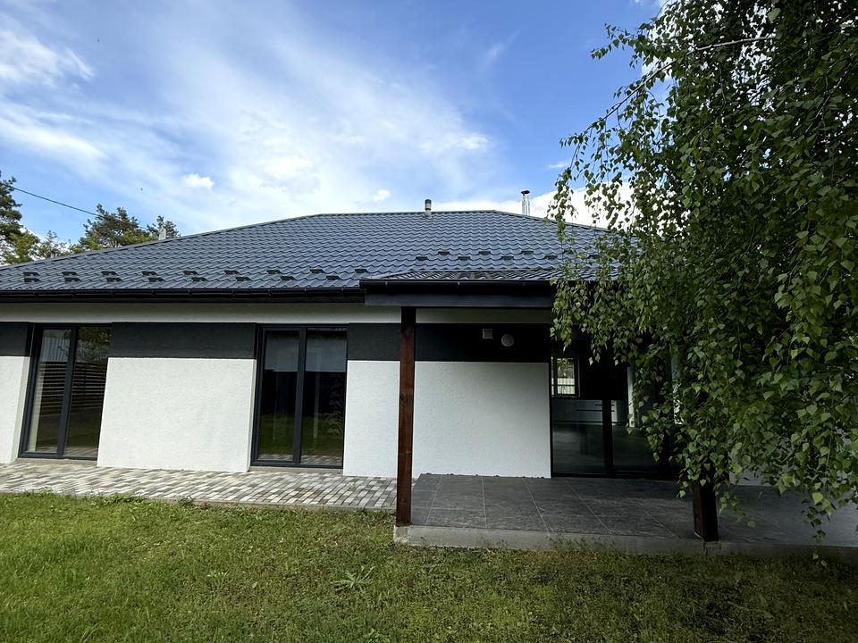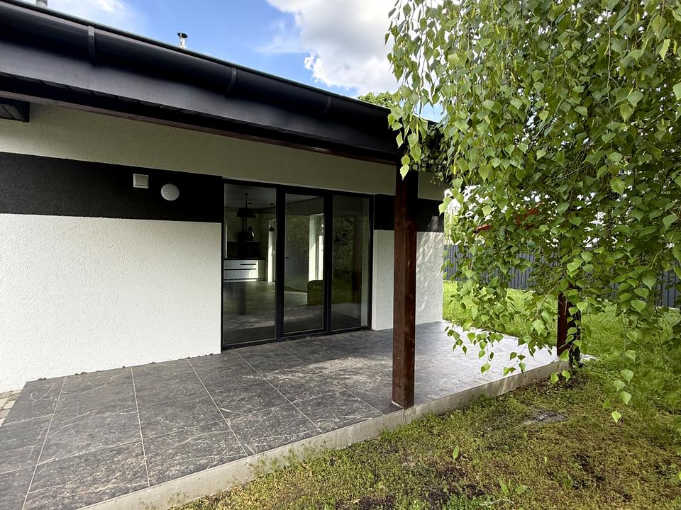 Будинок, 1 поверх, 4 кімнати. Матеріал стін - керамблок, фундамент будинку - залізобетон, матеріал перекриттів - дерево. Під'їзд до будинку - асфальт. Площа ділянки 6 соток. Висота стелі 2.8 метра. Планування кімнат Роздільне. Газ на вулиці. Є холодна вода, є гаряча вода. Опалення котел електричний. Покриття підлоги - плитка. В будинку немає балконів. Тип кухні - кухня-студія. Покриття даху - металочерепиця. Немає підвалу. У будинку є Кабельне ТБ, Камін, Душова кабіна, Холодильник, Мікрохвильовка, Посудомийна машина, Тераса. Будинок побудований в 2023 році. Централізована каналізація. Загальний стан будинку - З ремонтом. Кількість санвузлів: 2. Інтернет оптоволоконний. Зовнішнє утеплення стін. Працює без світла - інтернет. Без комісії
