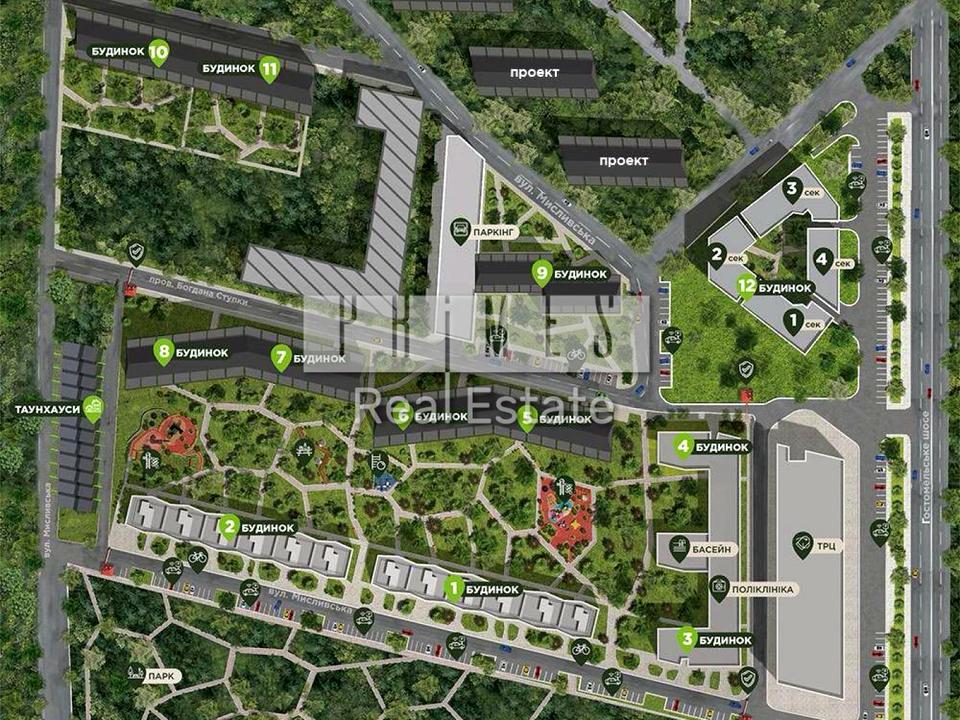 Таунхауси, розташовані на території ЖК Парктаун. Введені в експлуатацію і частково заселені.