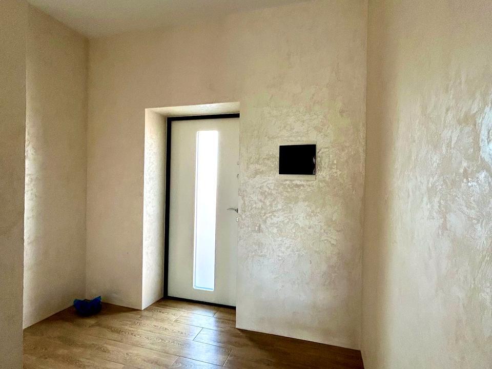 Загальна площа 52 м.кв., побудований з газоблоку, утеплений пінопластом 100 мм. Фасад оздоблений декоративною штукатуркою, дах: металочерепиця з утепленням мінеральною ватою 200 мм.