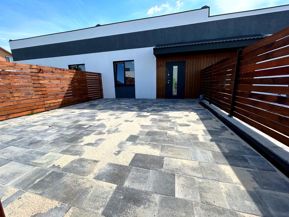 Таунхаус має власну ділянку в 2 сотки. Територія огороджена дерев'яним парканом, місце паркування вимощені бруківкою.