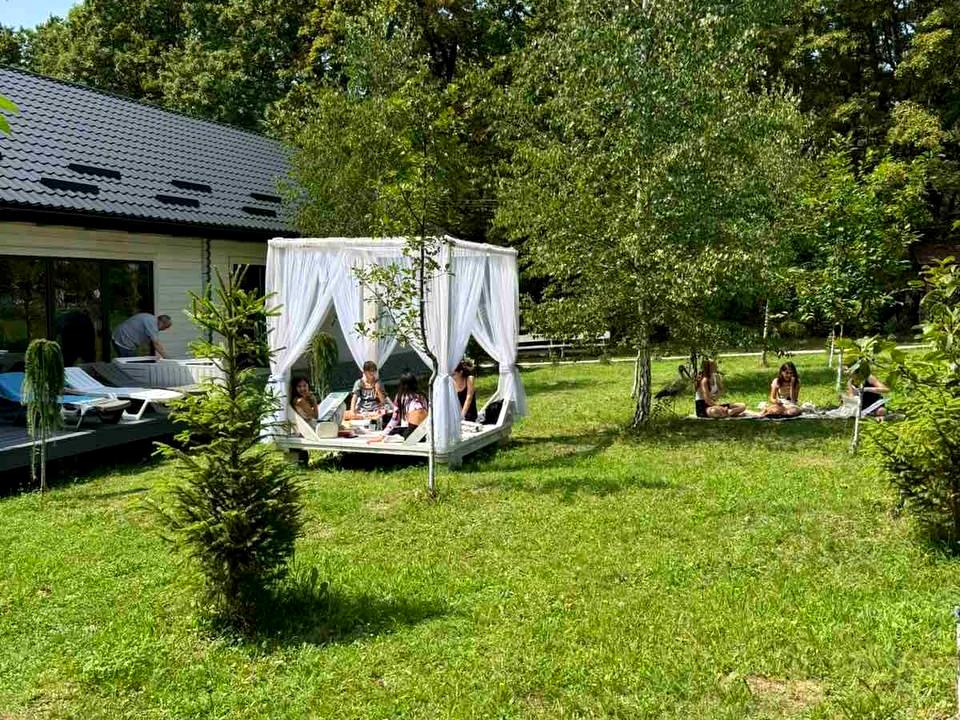 • Також на території дуже велика зелена зона, тарзанка, канатна дорога, біседка, мангал, будинок на дереві, карпатська карусель, рибник, поруч дубовий ліс з грибами.