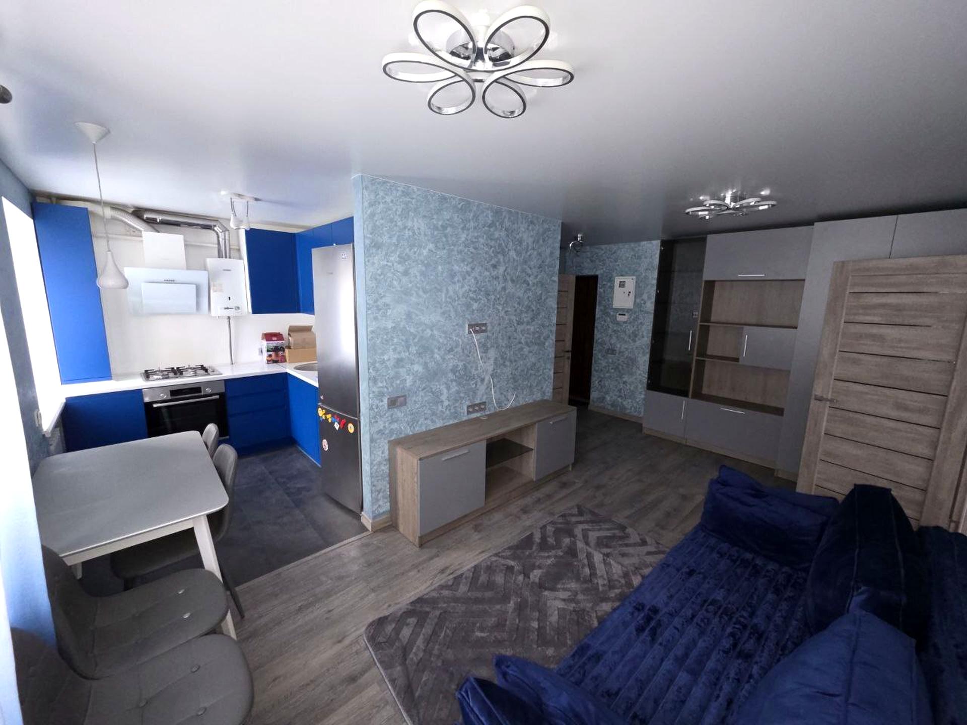 ✅Меблі: великий велюровий диван, обідня група, вбудована кухня, двоспальне ліжко з ортопедичним матрацом, комод, величезна дзеркальна шафа-купе та окрема гардеробна зона.