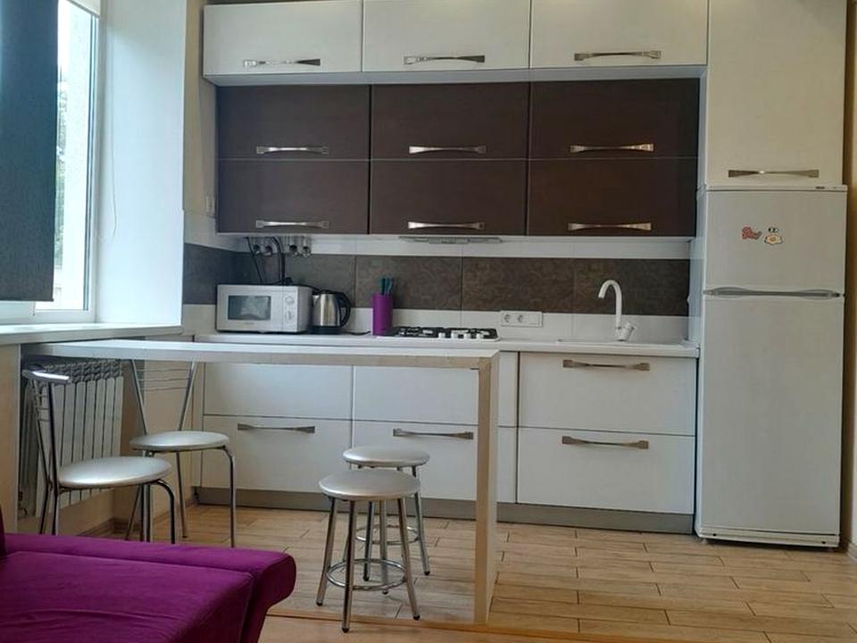 В квартирі 1 кімната. У квартирі є Телевізор, Кабельне ТБ, Праска, Пральна машина, Ванна, Холодильник, Мікрохвильовка, Посуд. Будинок побудований в 2012 році. Загальний стан квартири - З ремонтом. Комісія за послуги 50 %