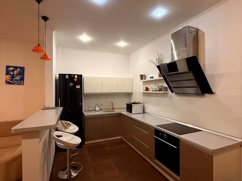 Формат квартири: окрема спальня, простора кухня-вітальня, 2 санвузли.
