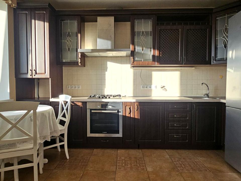 У квартирі зроблено дизайнерський ремонт, МПВ, броньовані двері. Меблі: Три великих шафи-купе, двоспальне ліжко, вбудована кухня, диван, що перетворюється в двоспальне ліжко «плюс», столи, стільці, тощо. Техніка: варильна панель, витяжка, пральна машинка, холодильник, бойлер, пилосос, кондиціонер тощо.