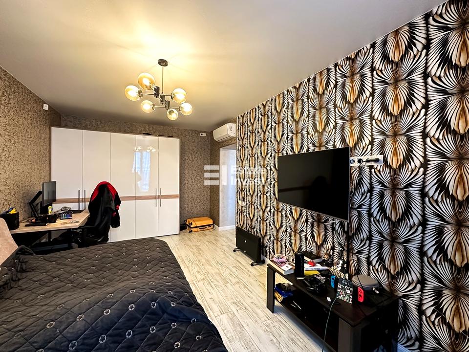 В квартирі зроблений гарний ремонт. Простора кухня студія з виходом на балкон. Є холодильник, духова піч. В спальній кімнаті є шафа купе, великий розкладний диван, встановлений кондиціонер та телевізор. Санвузол в світлих тонах з душевою кабіною, є пральна машина. Просторий балкон.