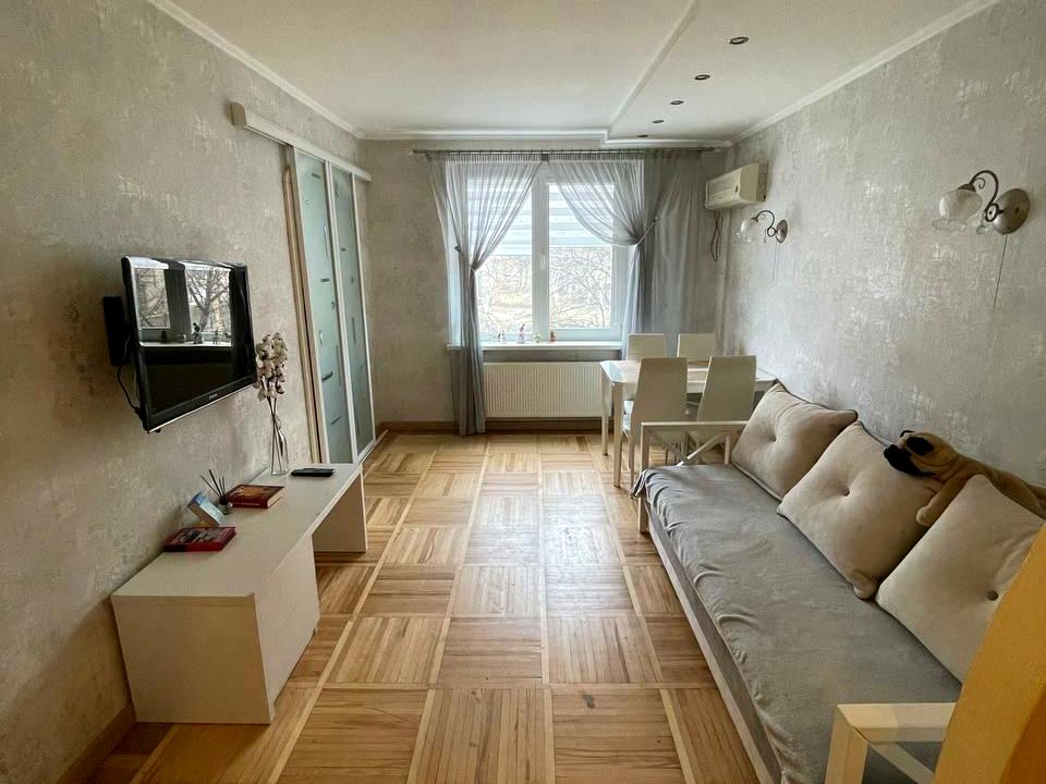 Квартира двусторонняя, с перепланировкой. Кухня объединена с гостиной, увеличена ванная комната. Две спальни, между ними большая гардеробная. Два балкона, оба благоустроены. Полный капитальный ремонт, всё сделано добротно. Паркет в комнатах реставрирован. Купите - и будете жить комфортно. Рассматриваем покупателей с сертификатами по Є-відновленню.