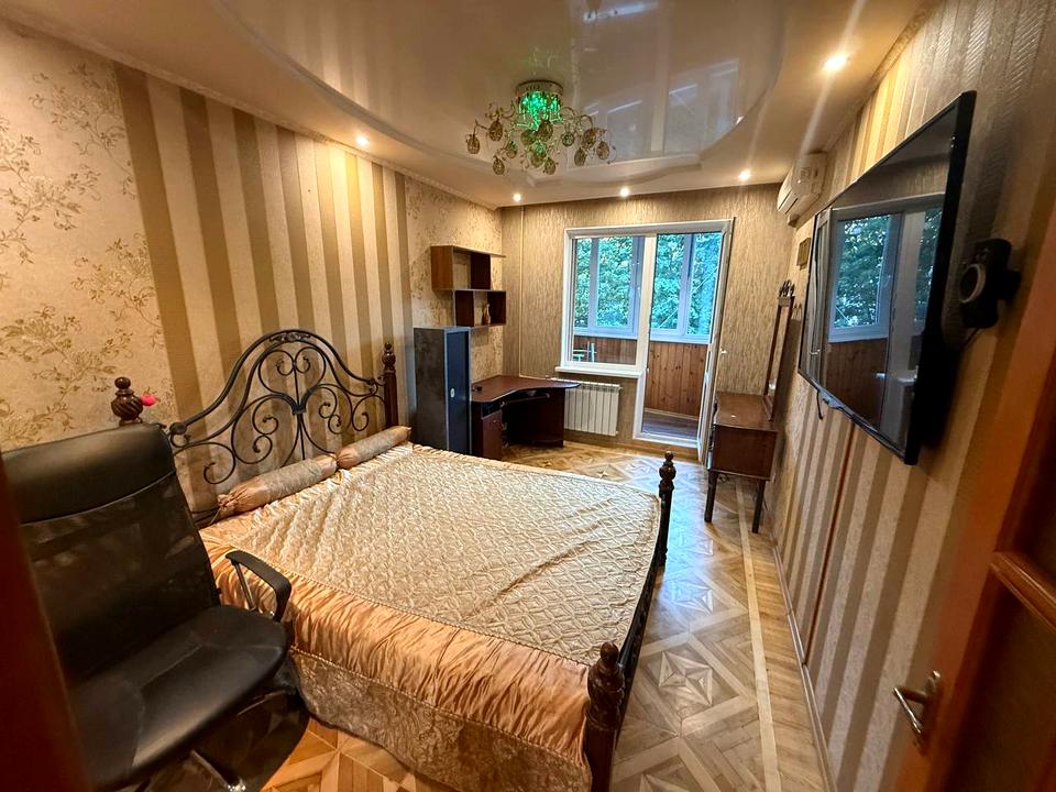 Окрема квартира, в квартирі 3 кімнати, висота стелі 2.6 метра, Технологія будівництва - Панельна. Планування кімнат Роздільне. Є газ, кухонна плита газова. Є гаряча вода. Є опалення. Суміщений санвузол, Туалет/ванна. Є сантехніка. Вхідні двері броньовані. Є покриття підлоги. Є балкон. В квартирі є Телевізор, Шафа, Ліжко, Кондиціонер, Пральна машина, Холодильник, Мікрохвильовка, Лічильники. Загальний стан квартири - З ремонтом. Поруч є дитсадок, школа, зупинки, розважальні заклади, супермаркет, річка/озеро, ліс. Терміново. Інтернет оптоволоконний. Комісія за послуги 5 $