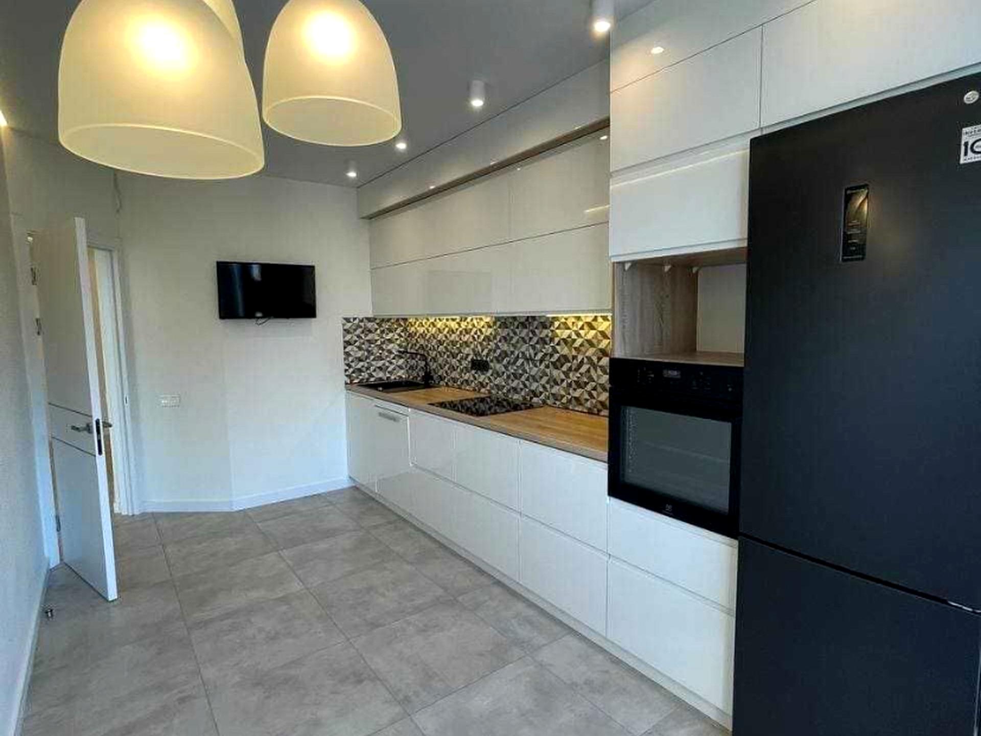 • Сучасний формат кухні, яка обладнана меблями та побутовою технікою, включаючи посудомийну машину, телевізор, холодильник, духовий шаф, індукційну плиту та витяжку;