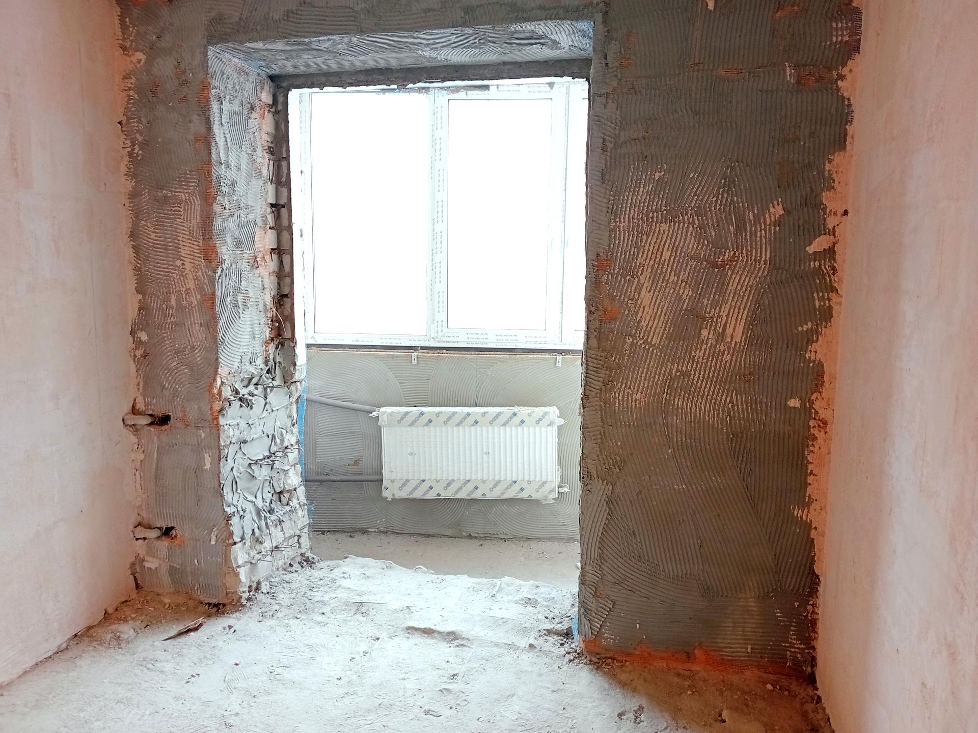 Выполнена черная отделка. Проводка, МПО, стяжка, радиаторы.