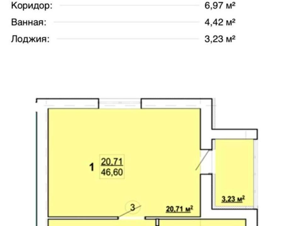 Загальна площа – 46,6 м.кв., кухня – 11,3 м.кв.