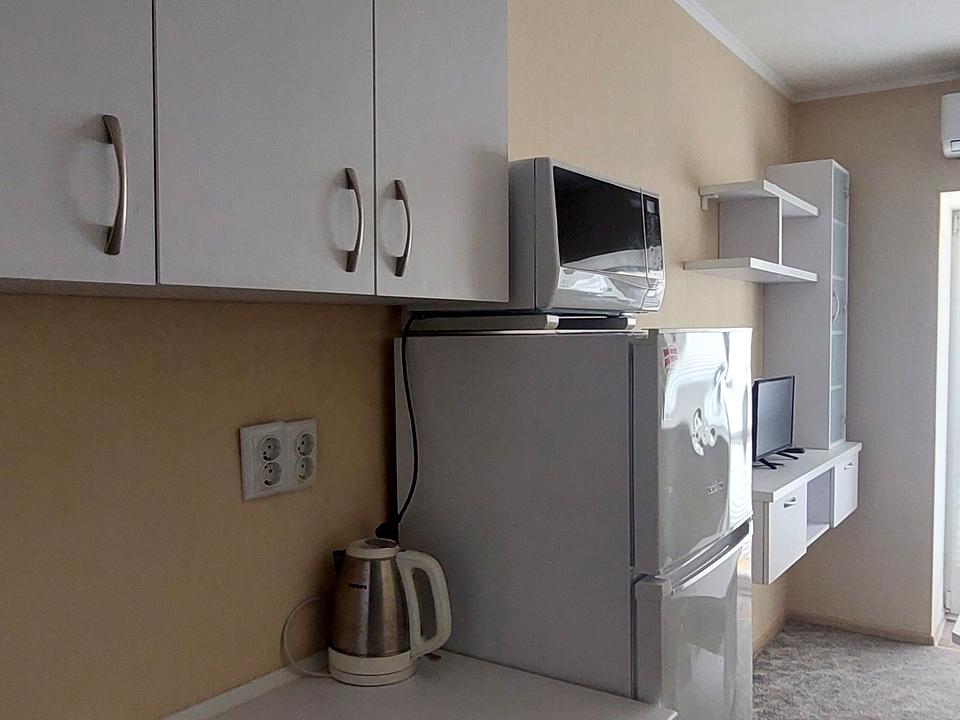 В квартирі 1 кімната, висота стелі 2.8 метра, Технологія будівництва - Цегляна, Тип будинку - Спец. проект. Планування кімнат Студія. В квартирі є Телевізор, Шафа, Ліжко, Кондиціонер, Пральна машина, Душова кабіна, Холодильник, Мікрохвильовка. Загальний стан квартири - З ремонтом. Ексклюзивний договір. Комісія за послуги 5 %