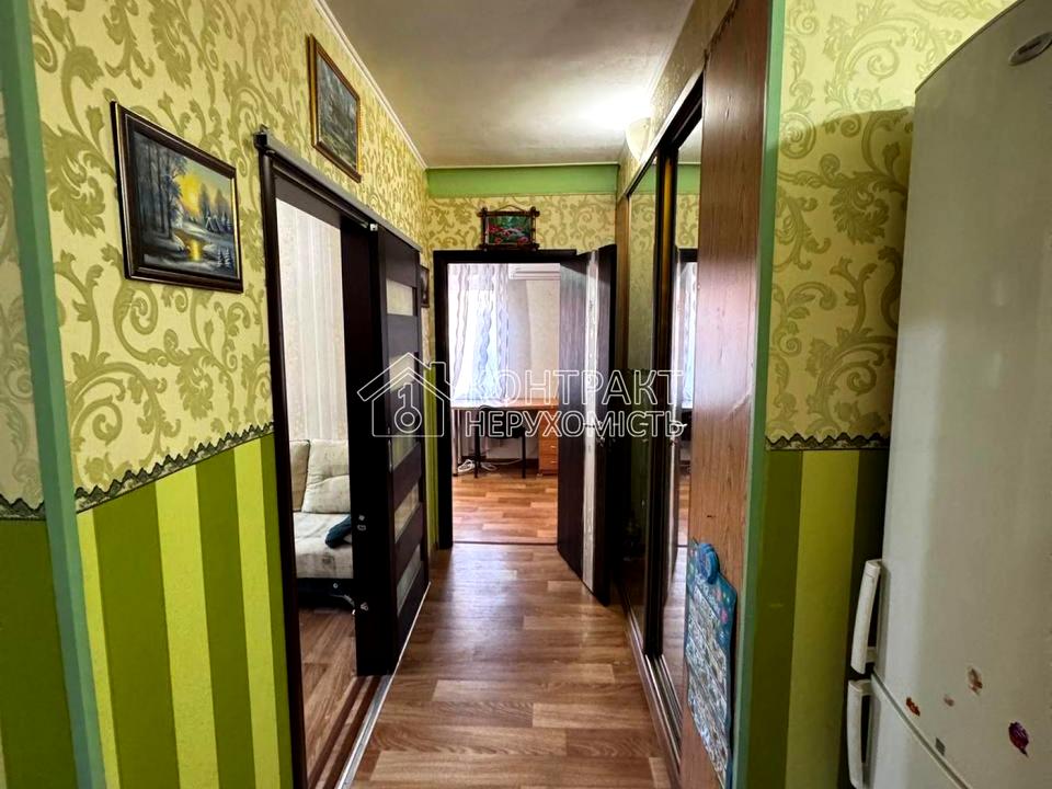 На підлозі – лінолеум, у коридорі та кімнаті вбудовані шафи-купе.