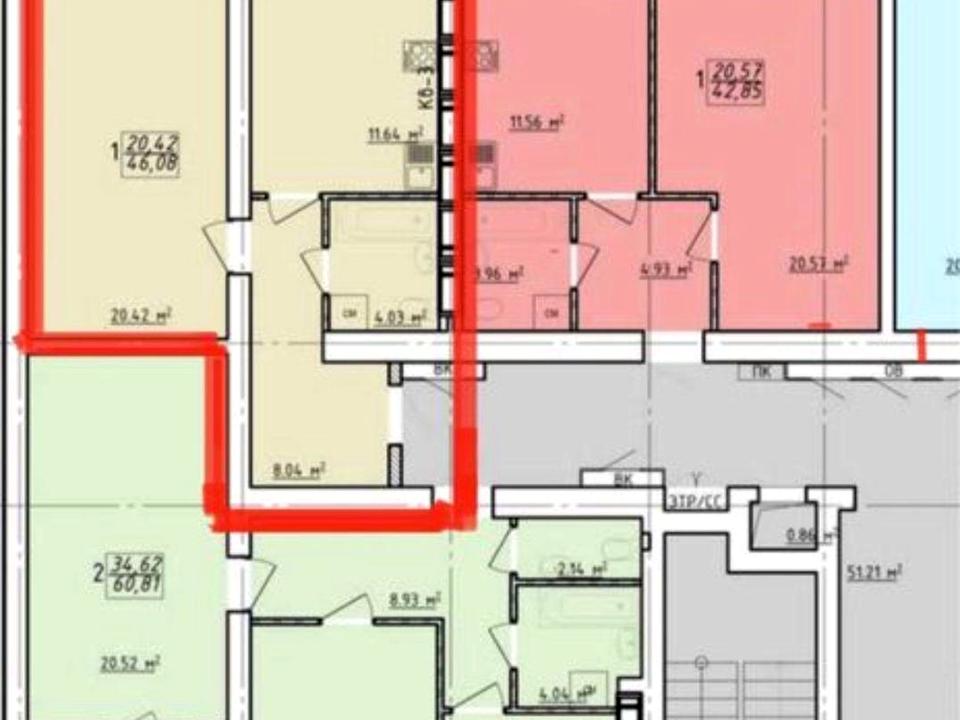 Загальна площа –46,08 кв.м: кухня 12 кв.м., кімната.