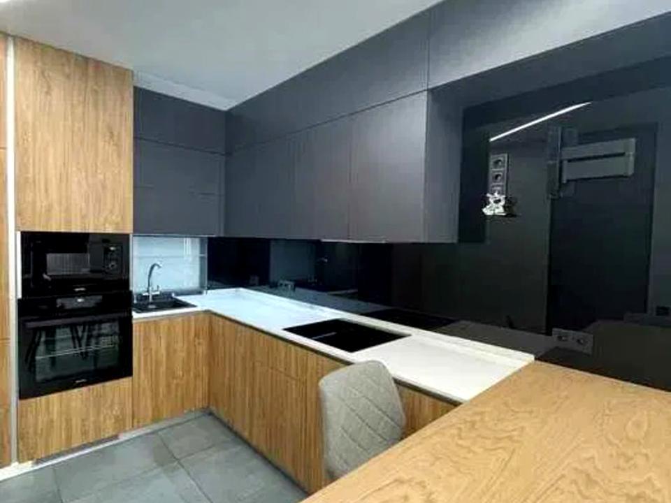 Індукційна варильна поверхня, вбудована витяжка, холодильник із морозильною камерою, духова шафа , мікрохвильова піч , посудомийна машина Bosh.