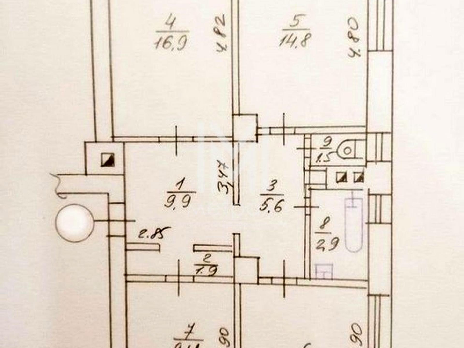 В квартирі 3 кімнати, Технологія будівництва - Цегляна, Тип будинку - Сталінка. В квартирі є . Будинок побудований в 1949 році. Загальний стан квартири - Без ремонту. Комісія за послуги 5 %