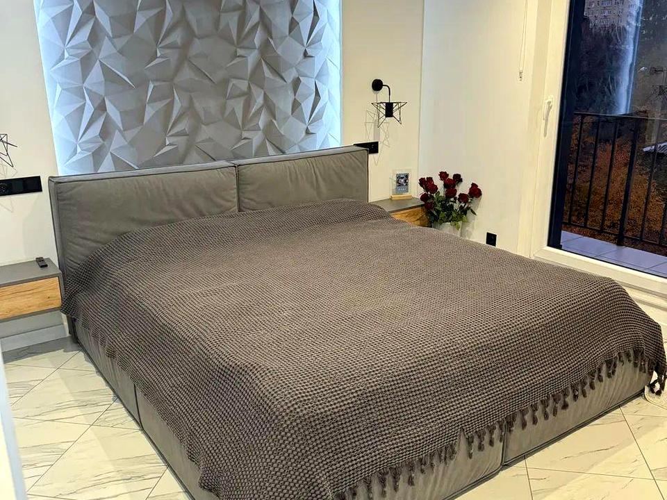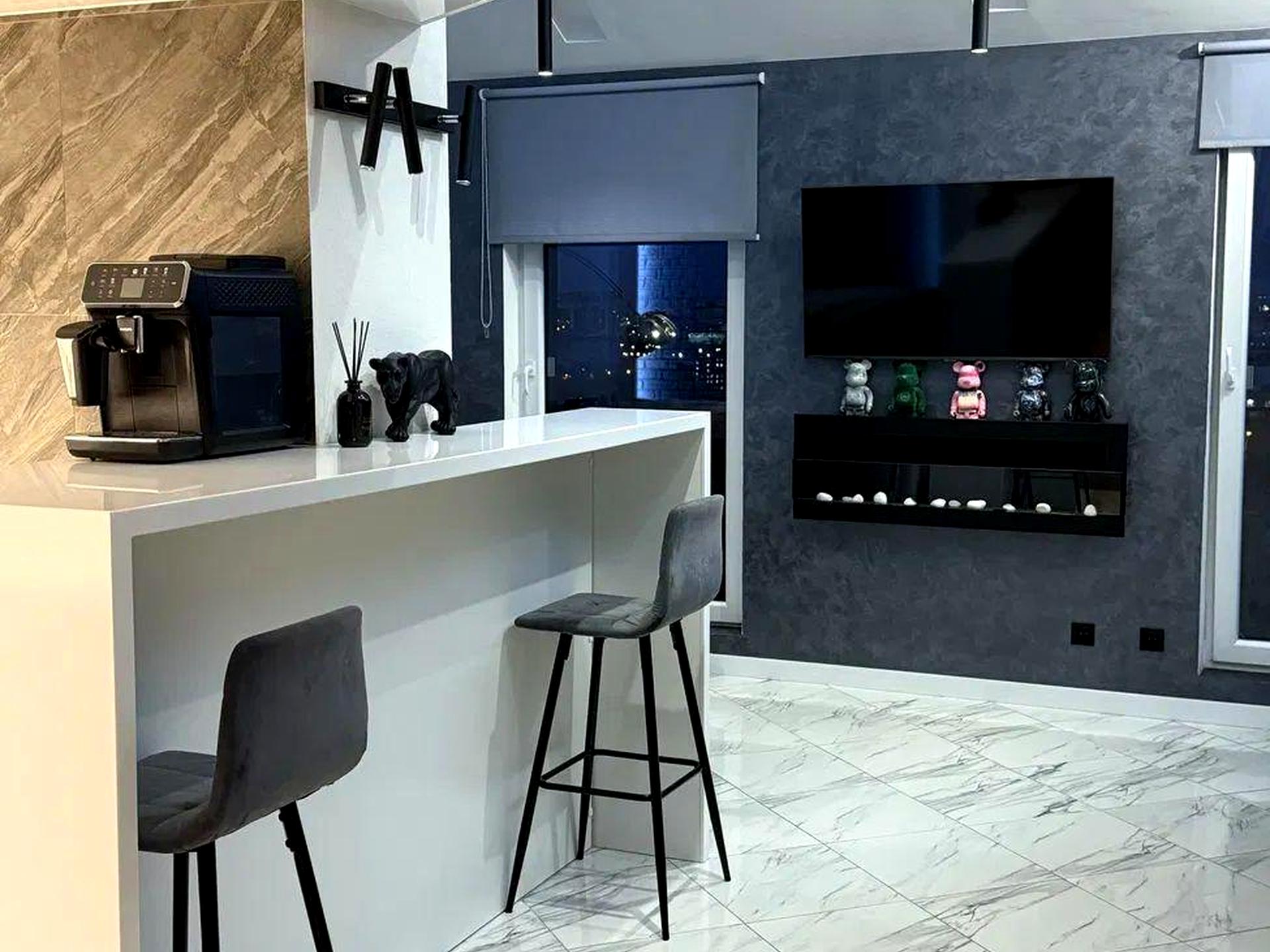 Квартира з якісним сучасним ремонтом, продаж з технікою та меблями за домовленістю сторін. Дуже гарний вид на місто. Два балкони. З новим дизайнерським ремонтом. Два санвузли (на першому та другому поверсі). Дві дитячі кімнати (на другому поверсі). Обідня зона з видом на місто. Спальня (будуар). Комора для господарських предметів. Великий коридор. Тепла підлога по всьому першому поверху