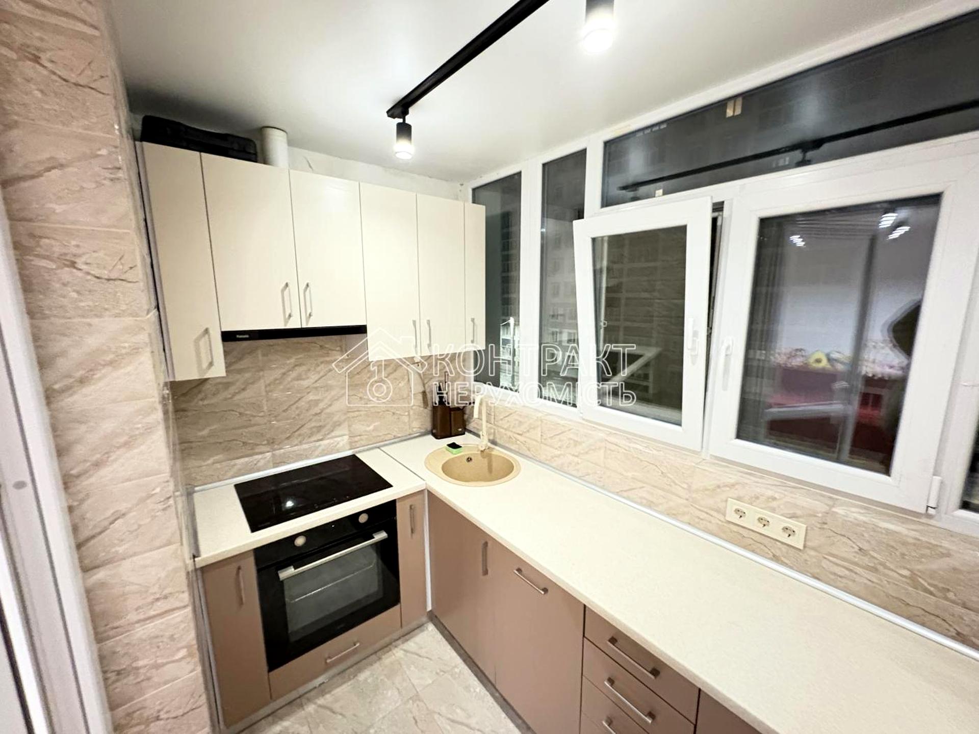 Вбудована кухня з якісною фурнітурою, індукційною варильною поверхнею, духовкою, посудомийною машиною та витяжкою