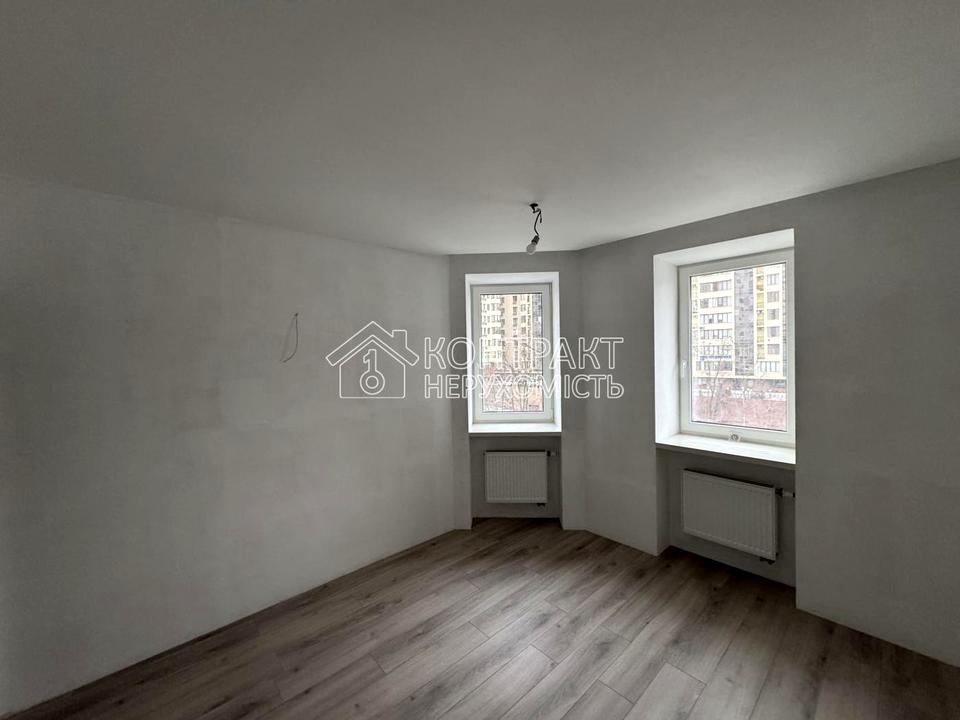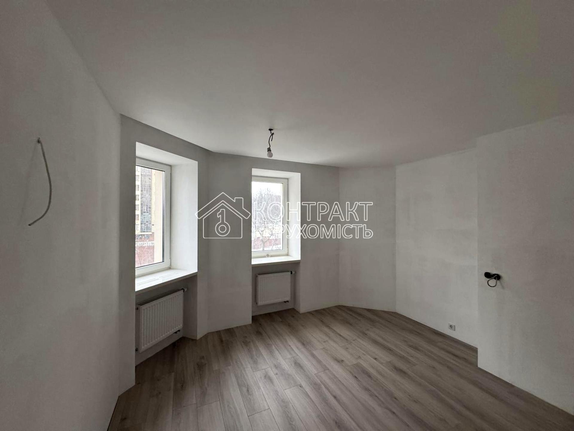 Вікна в квартирі двокамерні Rehau, гіпсокартоні стелі, на підлозі ламінат HARO (Німеччина). Двері міжкімнатні RODOS.