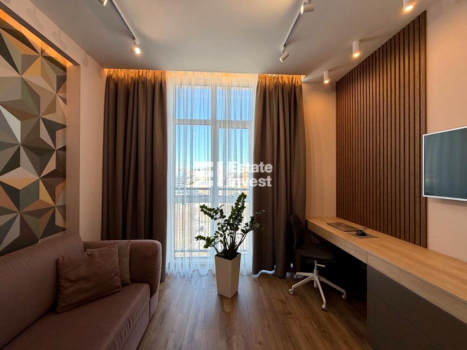 Квартира дуже світла, завдяки великим панорамним вікнам із гарним видом на паркову зону. Відчуття простору та усамітнення у найзеленішому районі міста.