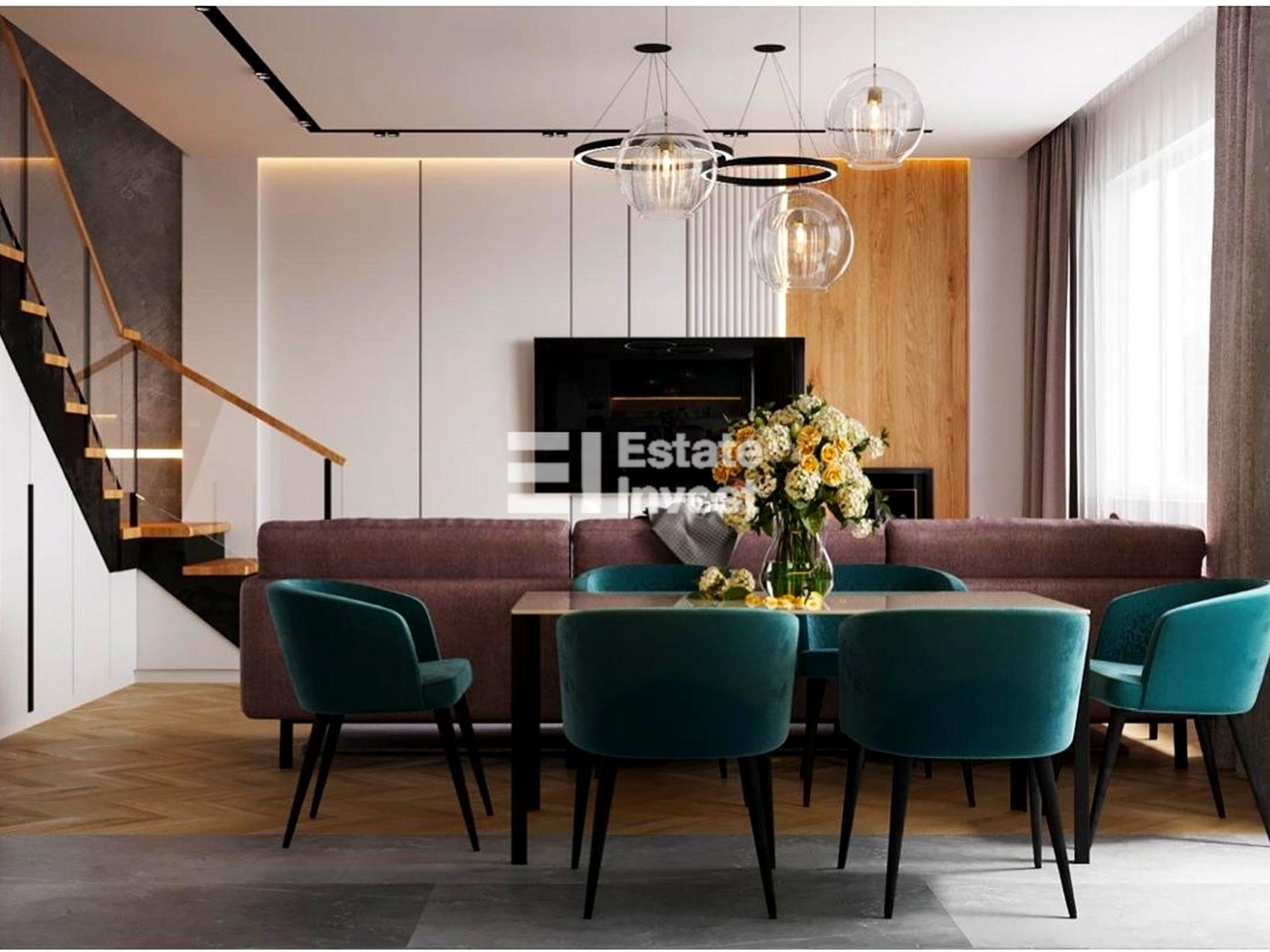 У квартирі виконані всі основні ремонтні роботи під чистове оздоблення: вирівняні стіни, зроблена стяжка підлоги, повністю виконана розводка електрики, встановлені сходи між рівнями, у санвузлах укладена плитка. Також придбані міжкімнатні двері прихованого монтажу та якісна сантехніка. Додатково є готовий дизайн-проєкт, за яким можна швидко завершити ремонт.
