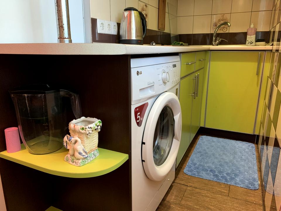В квартирі 1 кімната, висота стелі 3 метра, Технологія будівництва - Цегляна, Тип будинку - Сталінка. Немає газу, кухонна плита електрична. У квартирі є Телевізор, Підігрів підлоги, Пральна машина, Ванна, Холодильник. Загальний стан квартири - З ремонтом. Гаряча вода - електричний бойлер. Кількість санвузлів: 1. Працює без світла - вода. Комісія за послуги 5 %