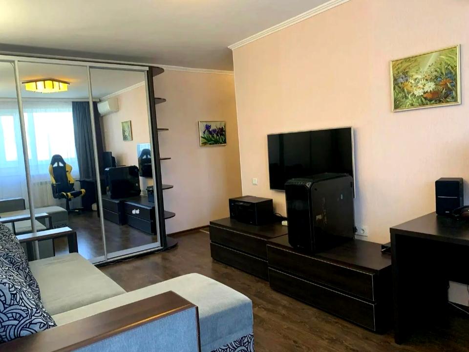 Зручне планування, суміжний санвузол, є балкон/лоджія. Квартира облаштована меблями: вбудована кухня, шафа-гардероб, двоспальне ліжко, диван, обідня зона.