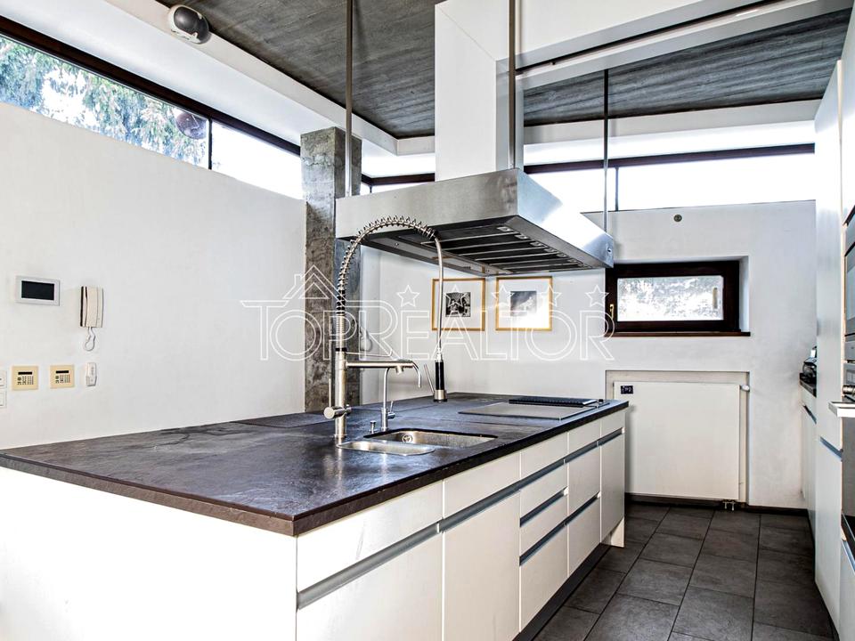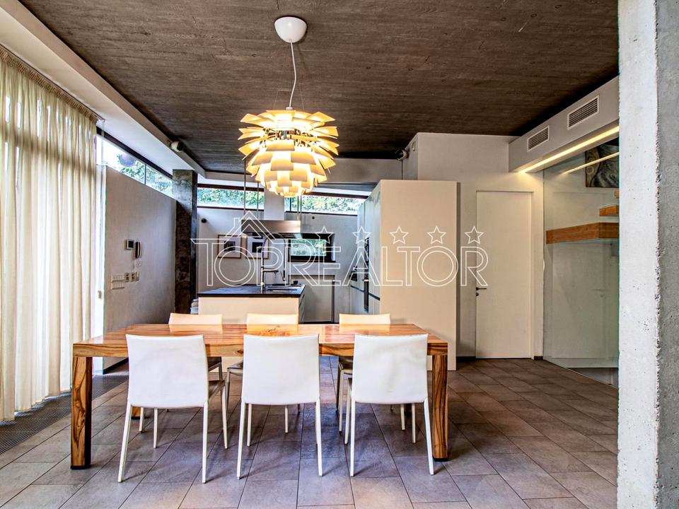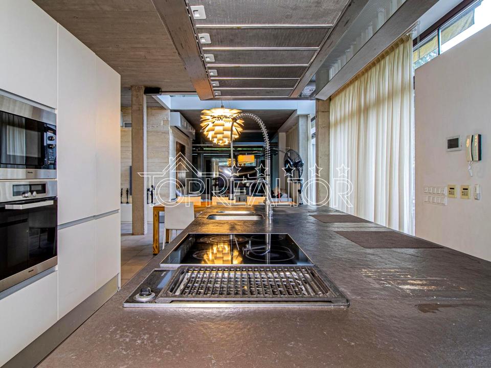 Будинок побудований із застосуванням сучасних технологій та преміальних матеріалів. Архітектура і дизайн — у стилі мінімалізм: поєднання скла, каменю, полірованого бетону та натурального дерева створює ефектну естетику.
