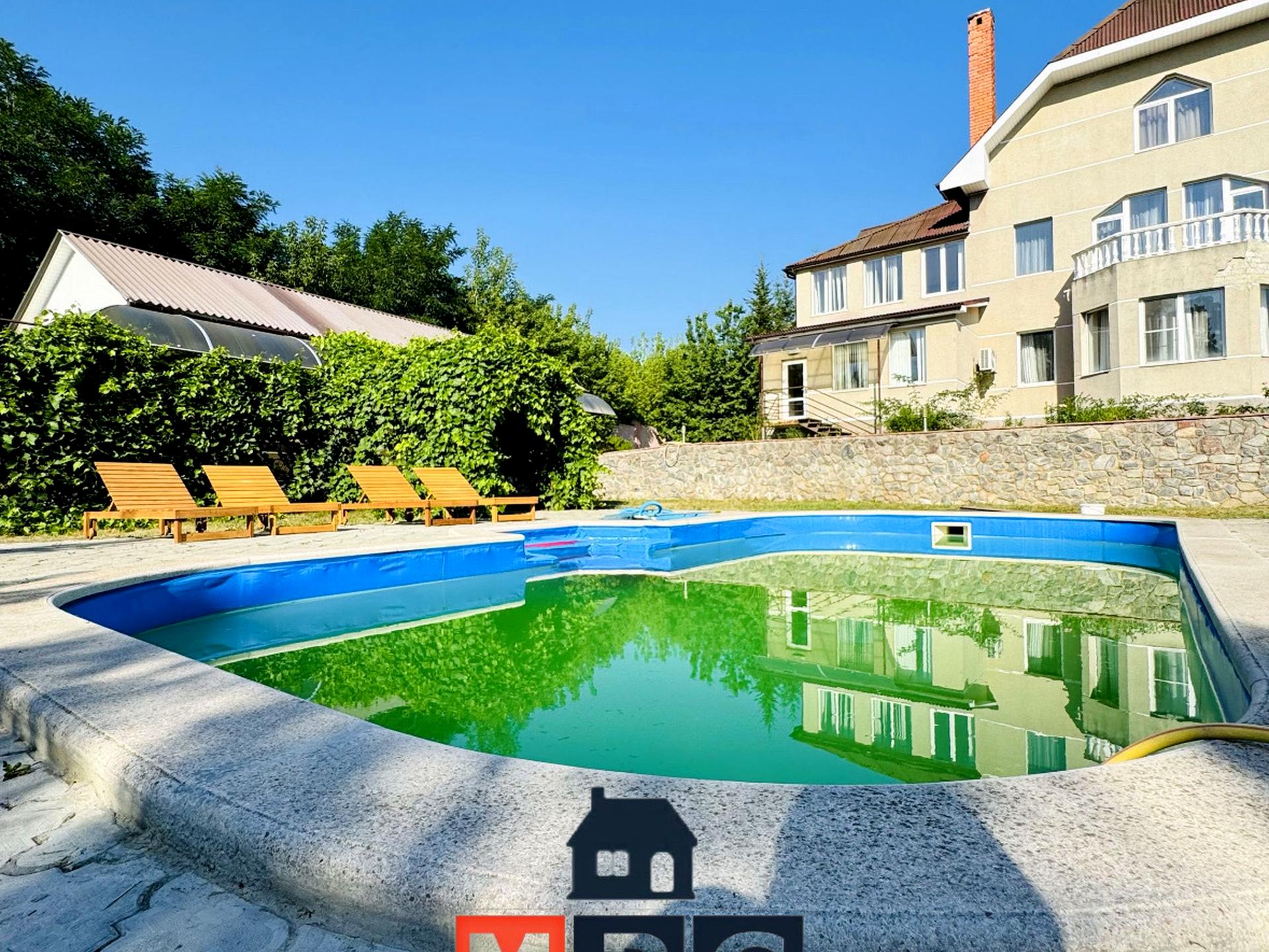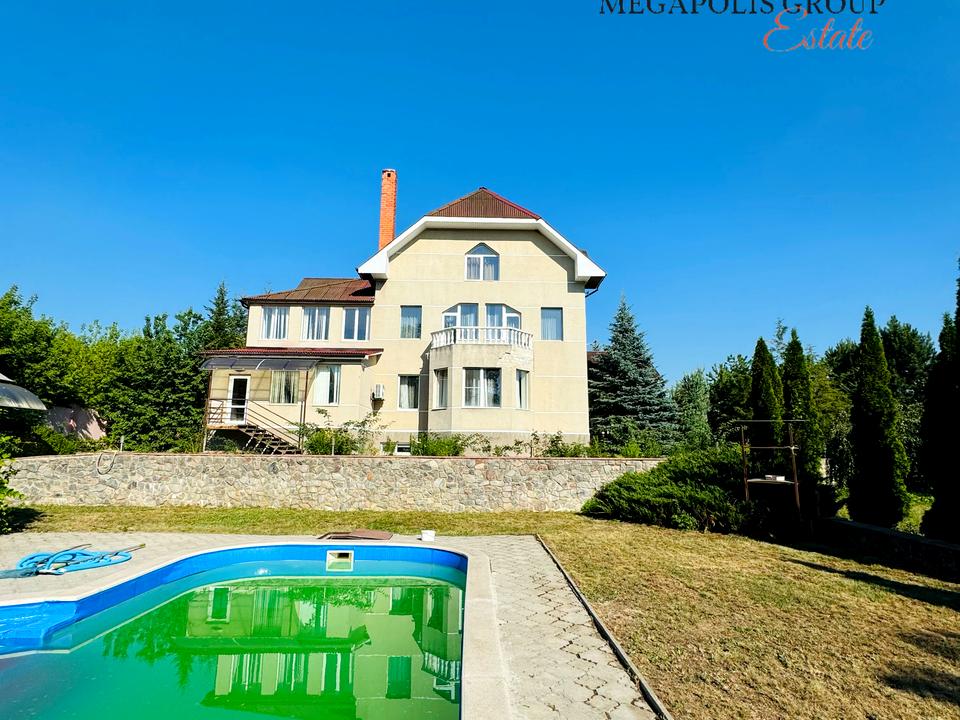 Кухня вітальня, гостинна кімната, кабінет. Є підвал, баня та басейн. Шикарна зелена ділянка з басейном.