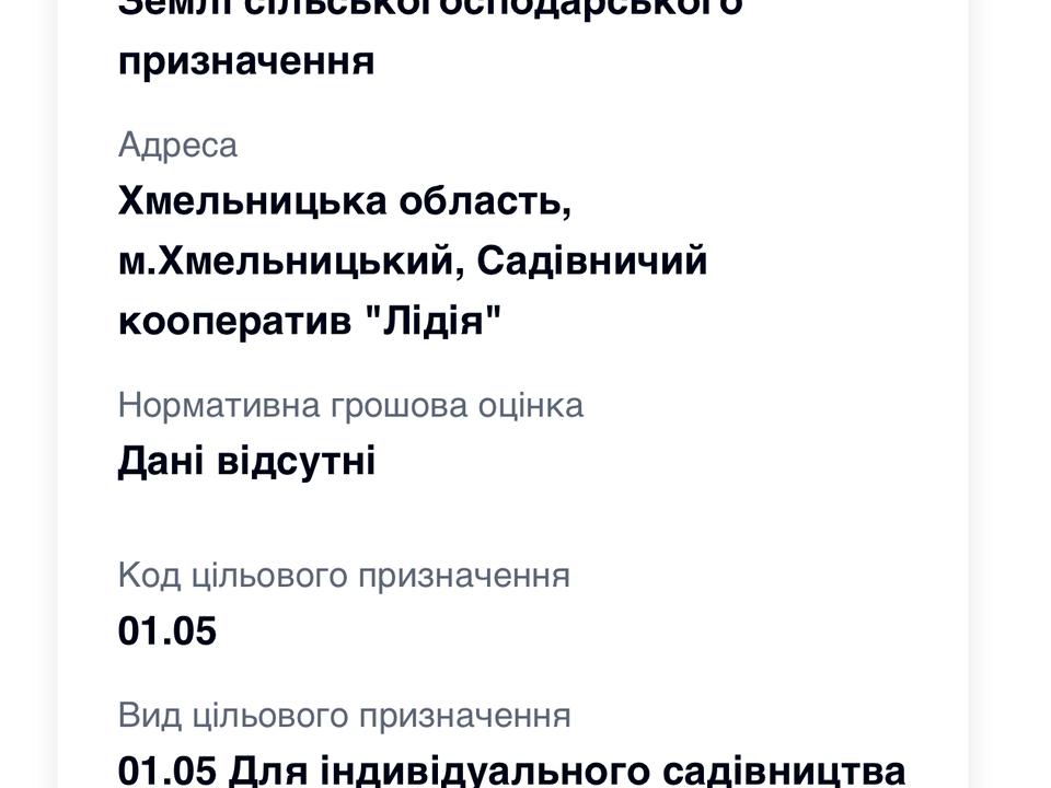Хмельницька область, м.Хмельницький, Садівничий кооператив "Лідія"