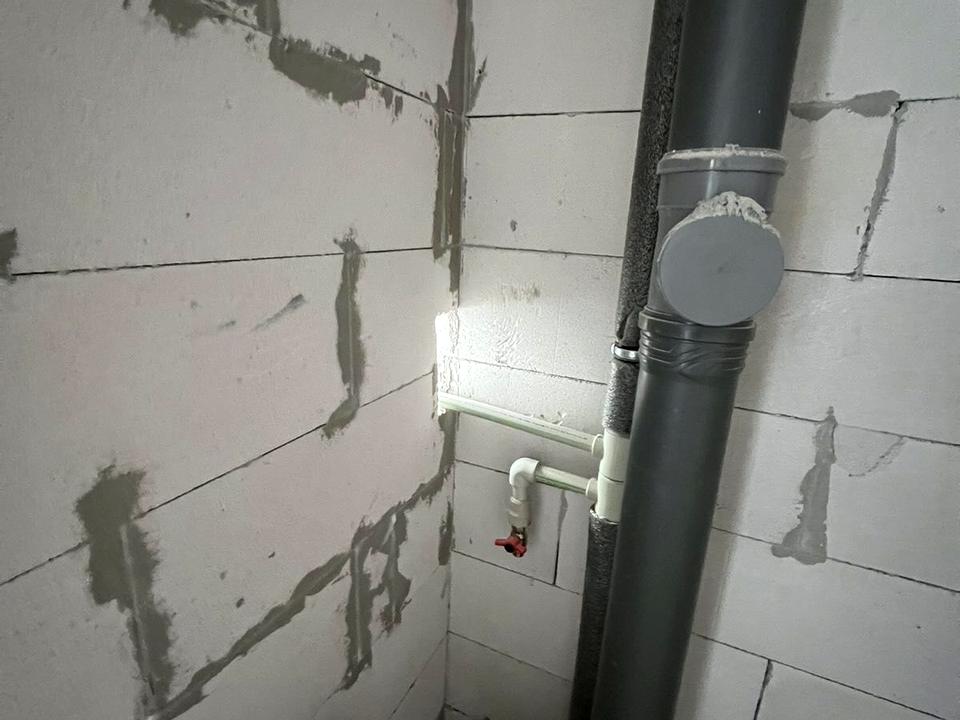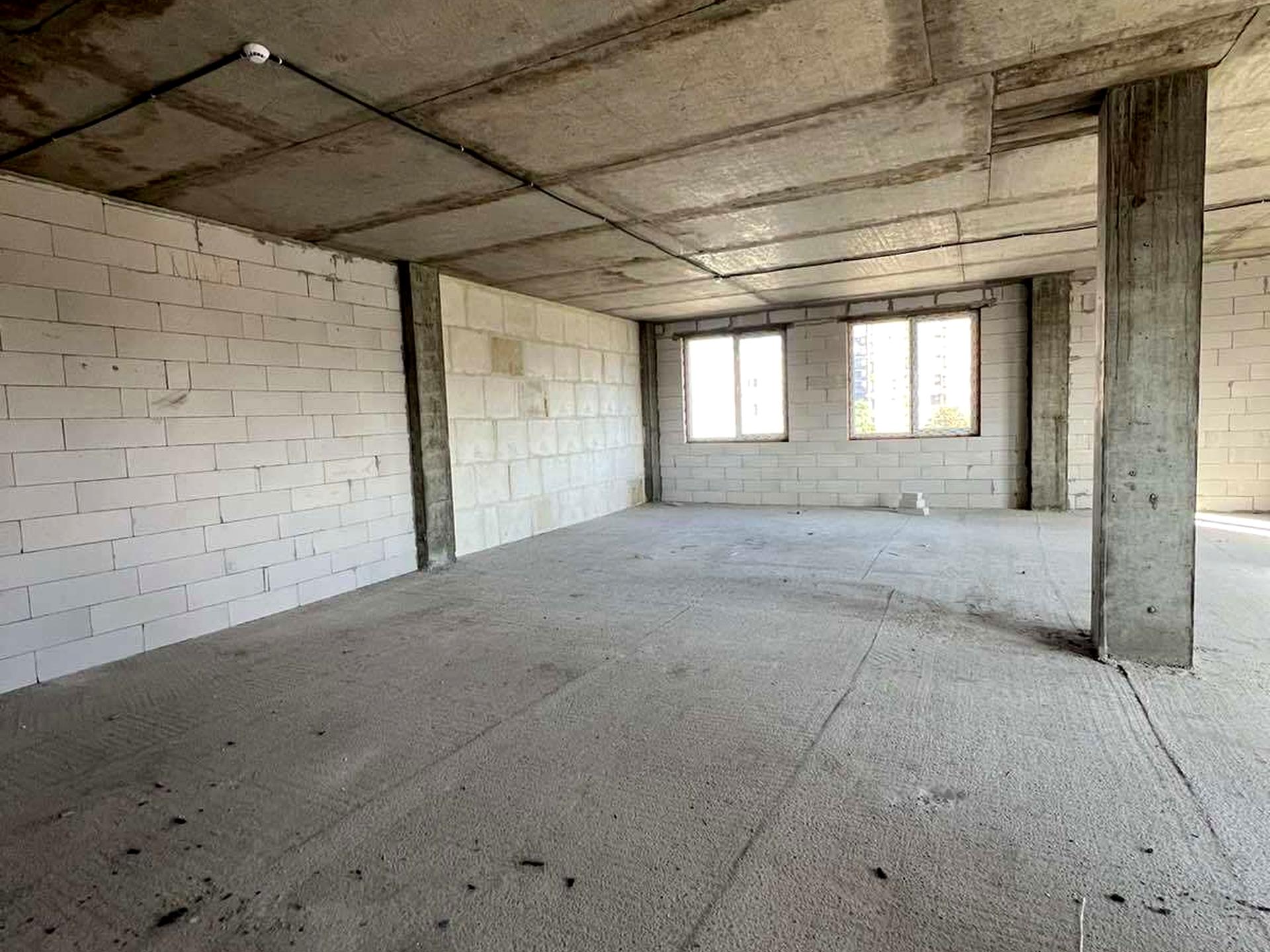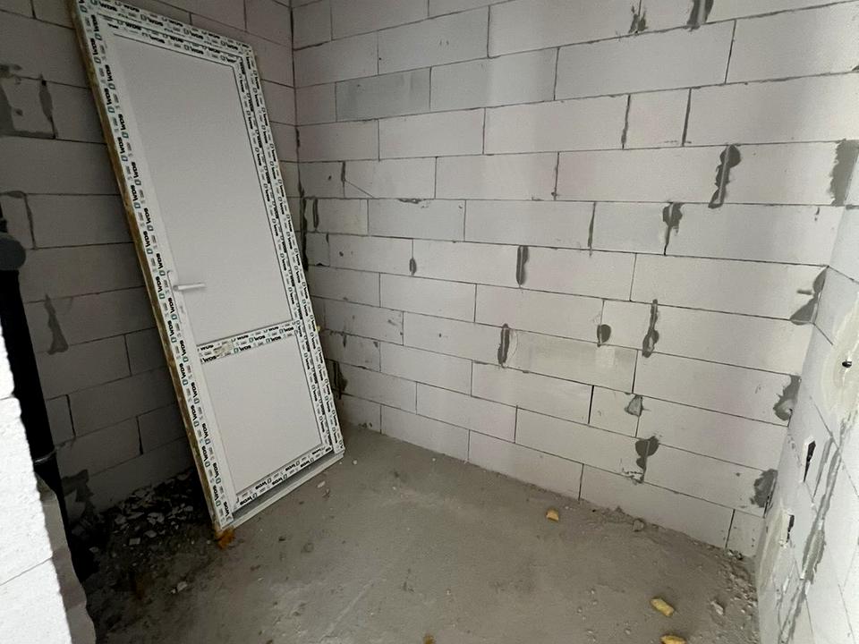 - Встановлені перестінки для облаштування 2 санвузлів і кухні — приміщення планувалося під заклад харчування;