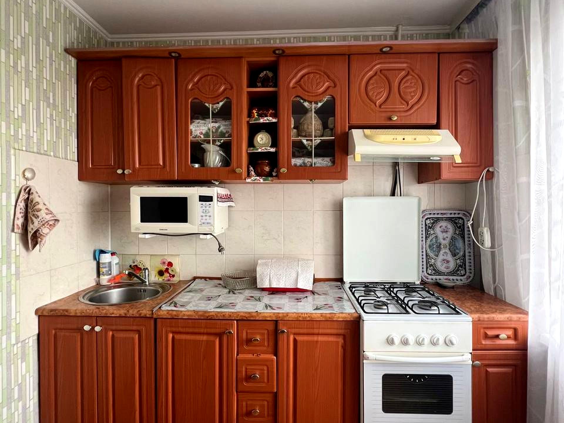 В квартирі 3 кімнати, Технологія будівництва - Панельна. Планування кімнат Роздільне. Є газ, кухонна плита газова. Є 2 балкони. У квартирі є Телевізор, Кабельне ТБ, Супутникове ТБ, Праска, Пральна машина, Холодильник, Мікрохвильовка, Посуд, Сейф. Загальний стан квартири - З ремонтом. Гаряча вода - централізована. Кількість санвузлів: 1. Працює без світла - вода, газ, опалення, інтернет, ліфт. Комісія за послуги 100 %