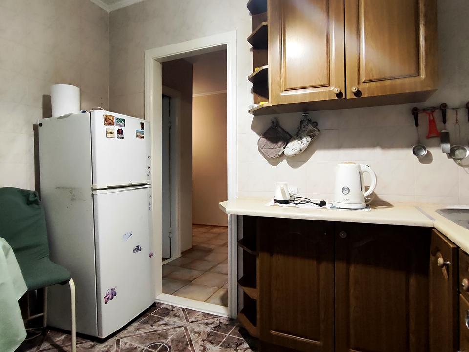 Є невелика містка гардеробна, пралка, меблі, техніка, посуд