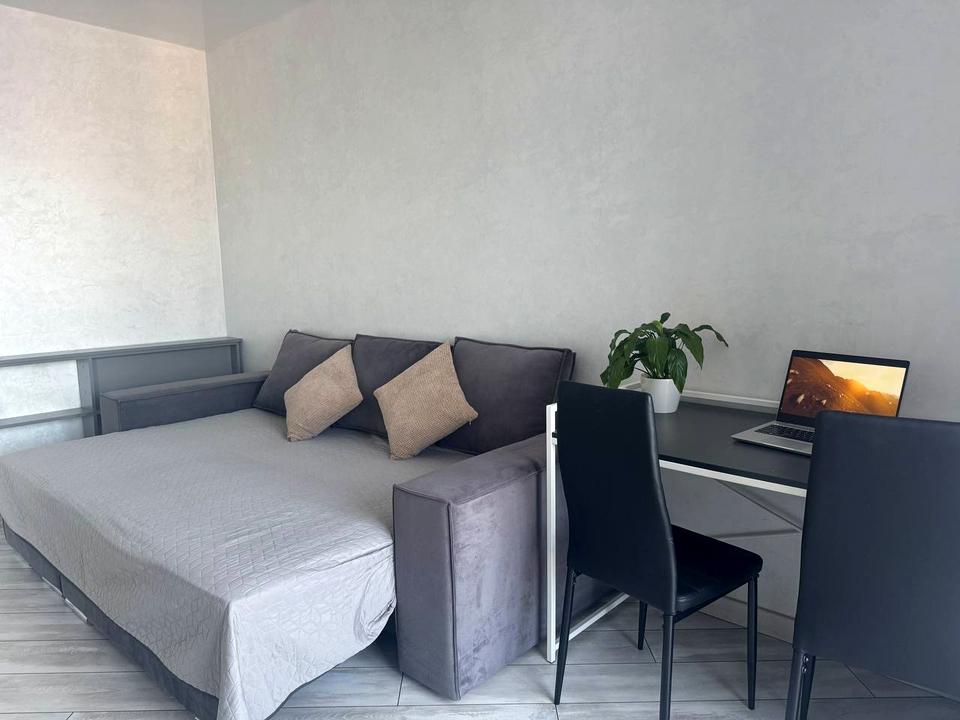 Повністю укомплектована для комфортного проживання: вбудована кухня, холодильник, пральна машина, кондиціонер, електроплита, духова шафа, мікрохвильова піч, диван, шафа-гардероб, письмовий стіл, пилосос, фільтр для води. Є лоджія.