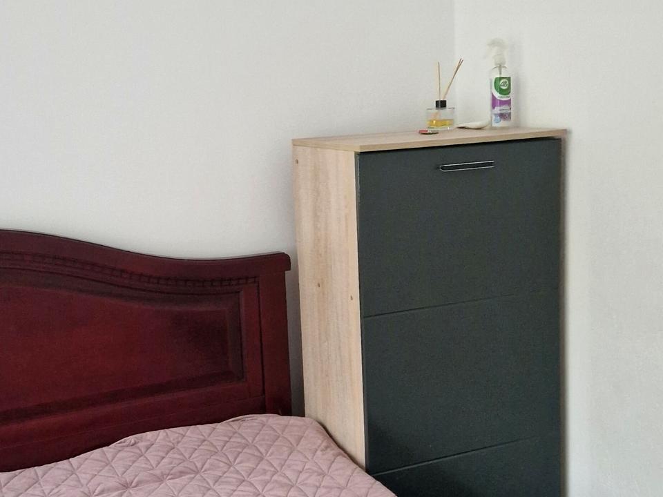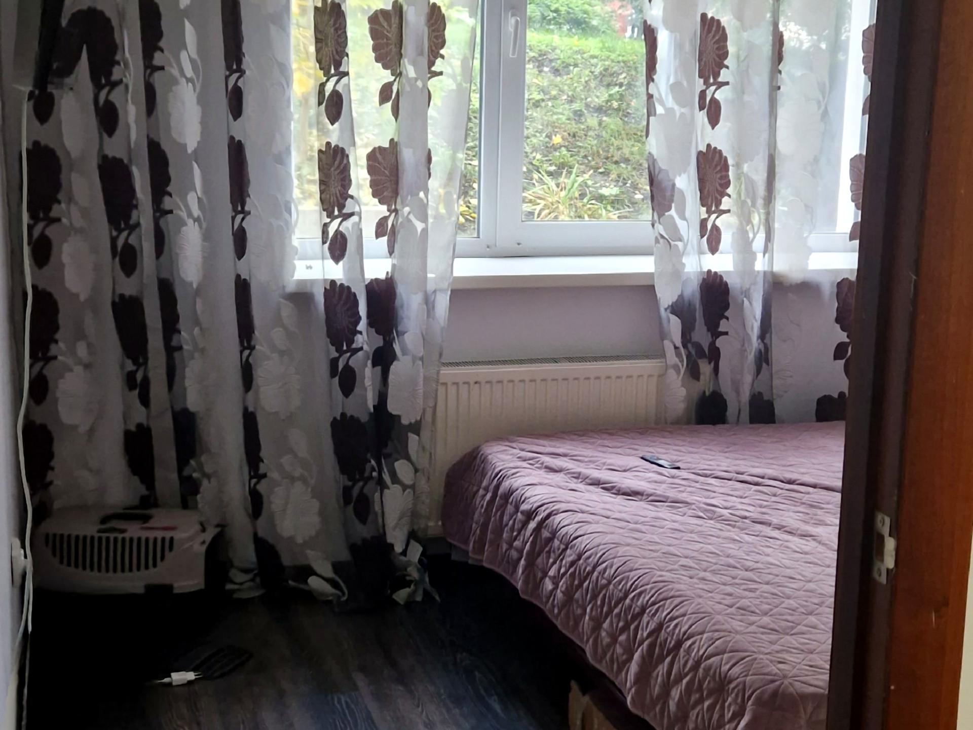 В квартирі є ліжко, комод, велика шафа, розкладний диван, пральна машина, духовка, варильна поверхня ...