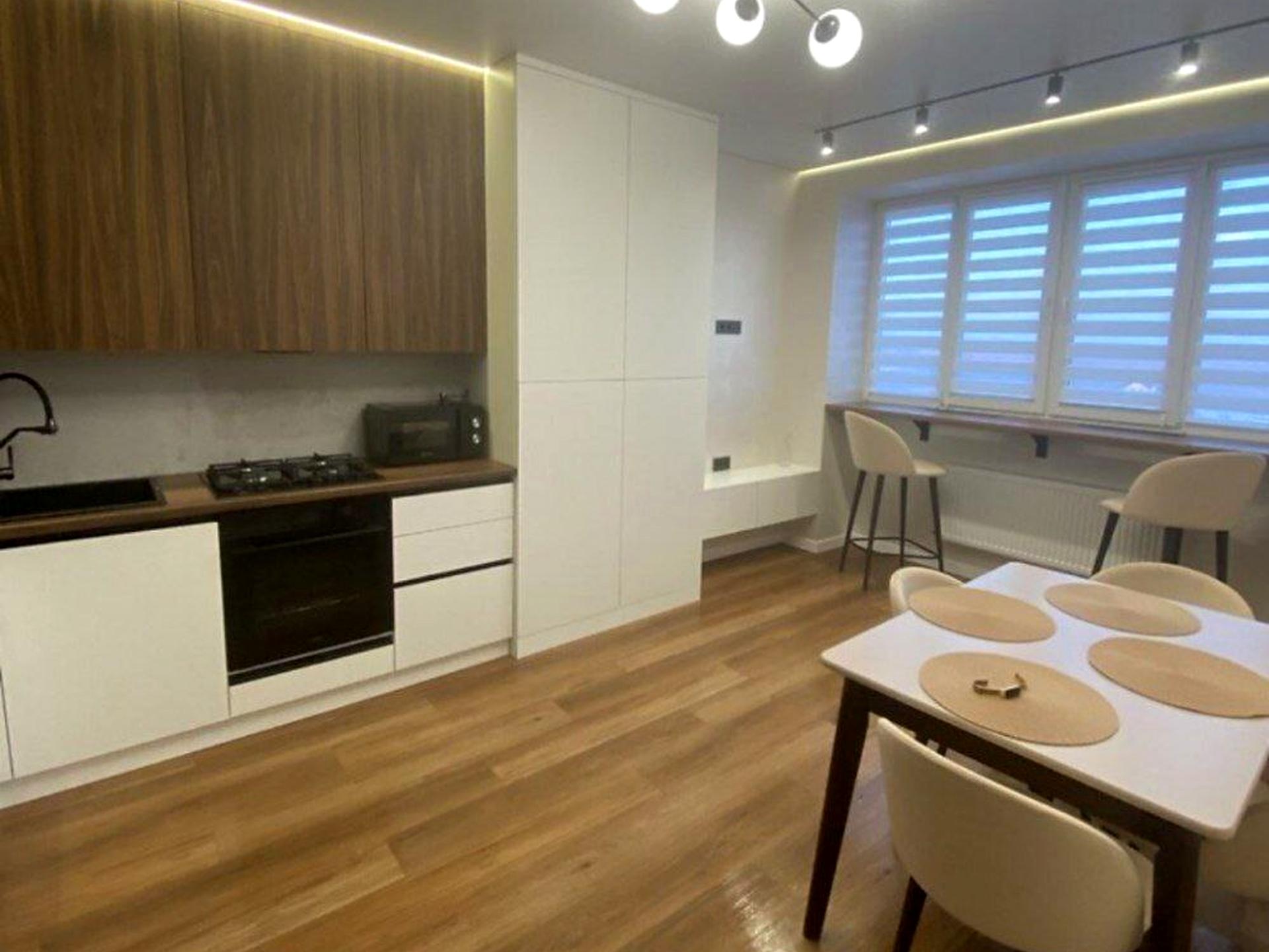 В квартирі 1 кімната, Тип будинку - Спец. проект. Є газ, кухонна плита газова. У квартирі є Телевізор, Пральна машина, Ванна, Холодильник, Мікрохвильовка. Будинок побудований в 2022 році. Загальний стан квартири - З ремонтом. Гаряча вода - газовий котел. Кількість санвузлів: 1. Кількість спален: 1. Комісія за послуги 80 %