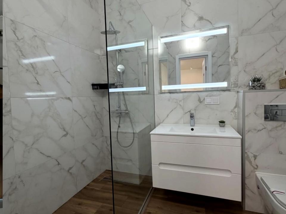 В квартирі 1 кімната, висота стелі 3 метра, Тип будинку - Спец. проект. Кухонна плита газова. Є балкон. У квартирі є Підігрів підлоги, Пральна машина, Душова кабіна, Холодильник, Посудомийна машина. Будинок побудований в 2023 році. Загальний стан квартири - З ремонтом. Гаряча вода - газовий котел. Кількість спален: 1. Комісія за послуги 100 %