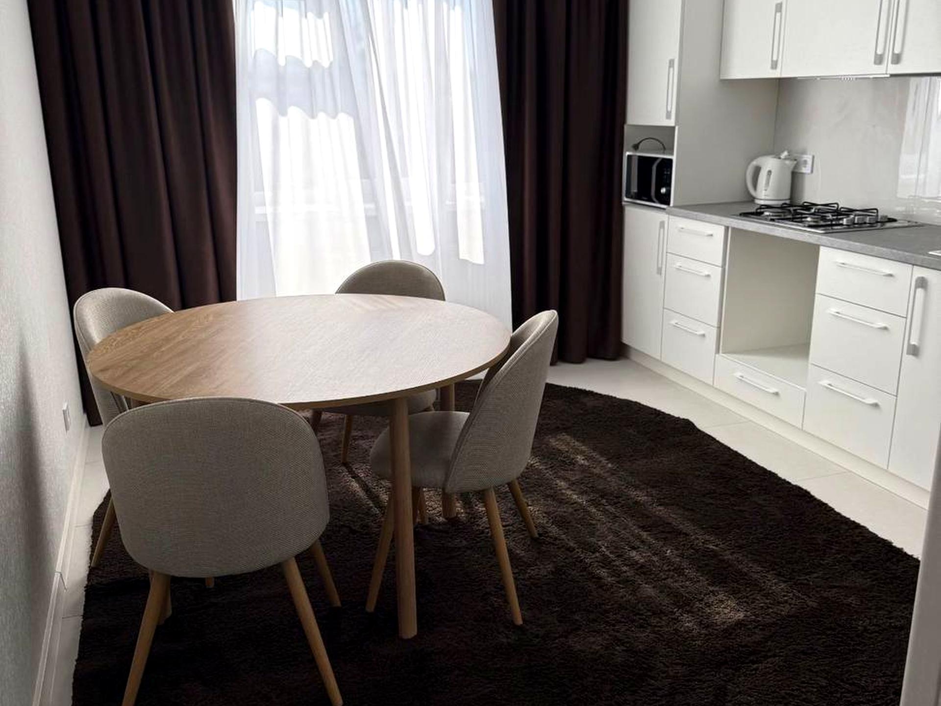 Квартира простора та світла, укомплектована всіма необхідними меблями та технікою для комфортного проживання.