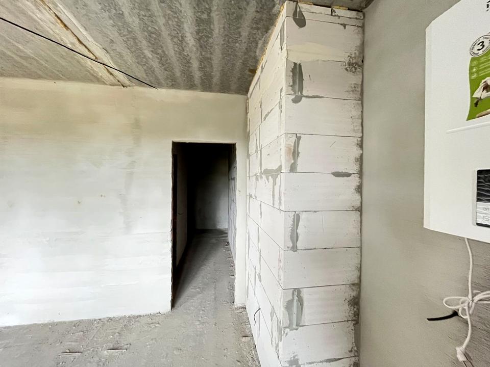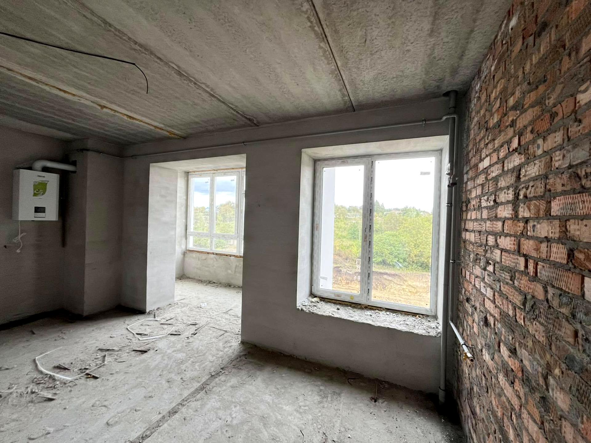 Стан від забудовника: штукатурка несучих стін, розведена електрика, якісні вхідні двері, двоконтурний газовий котел, лічильники.