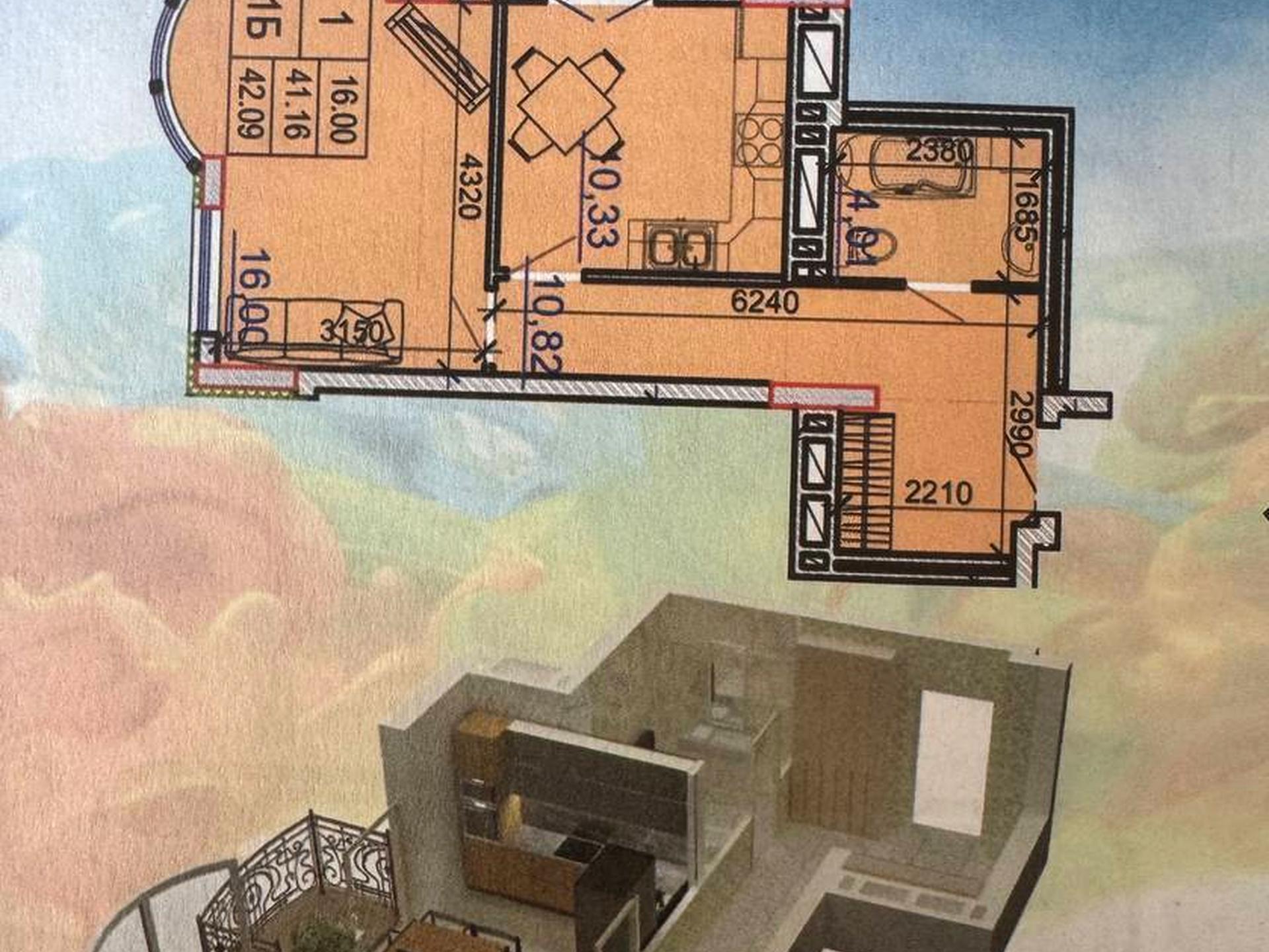 1к квартира в центрі, з шикарним видом на місто.