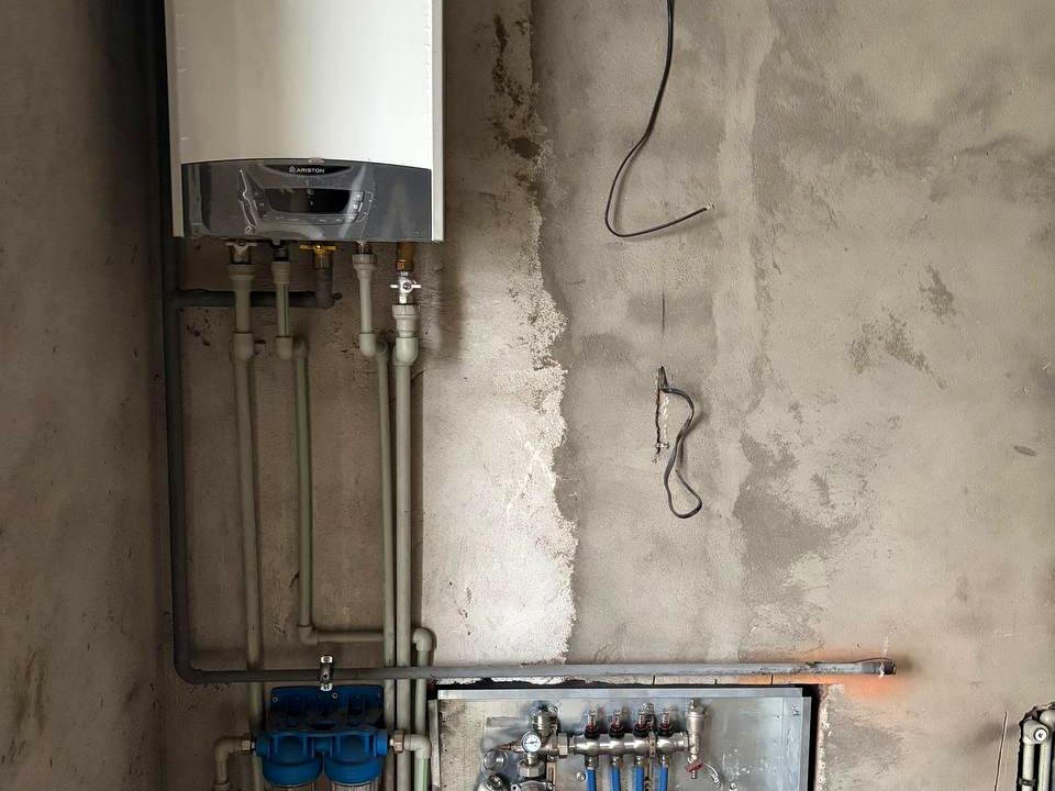 Зроблена розводка теплої підлоги ( коридор, кухня, с/в), електрики, встановлений котел та радіатори, вмонтована інсталяція, є унітаз та куплена плитка на коридор, кухню та с/в.