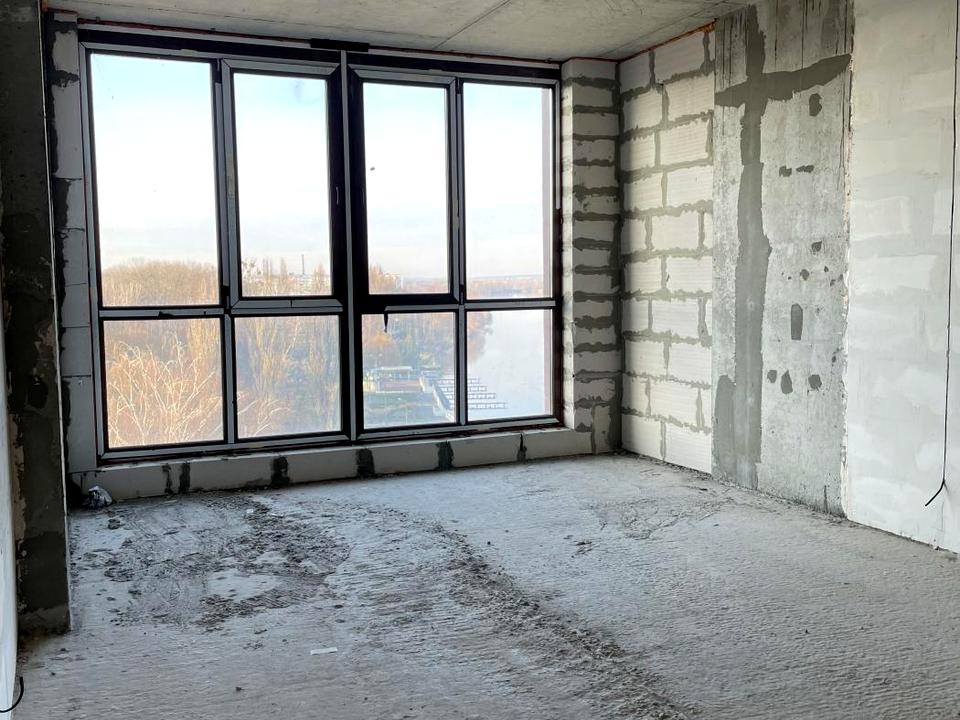 Це квартира, в якій відчувається простір і світло ще з першого кроку. Великі вікна наповнюють кімнату денним світлом і відкривають вигляд на парк та річку з відчуттям тиші й приватності.