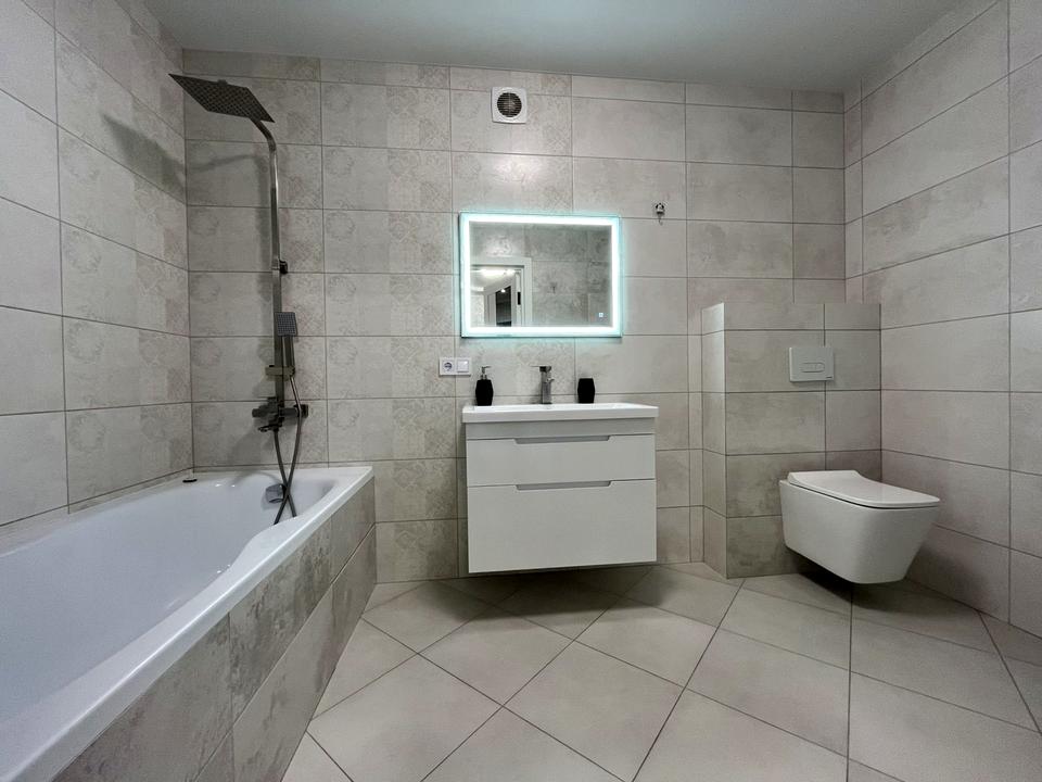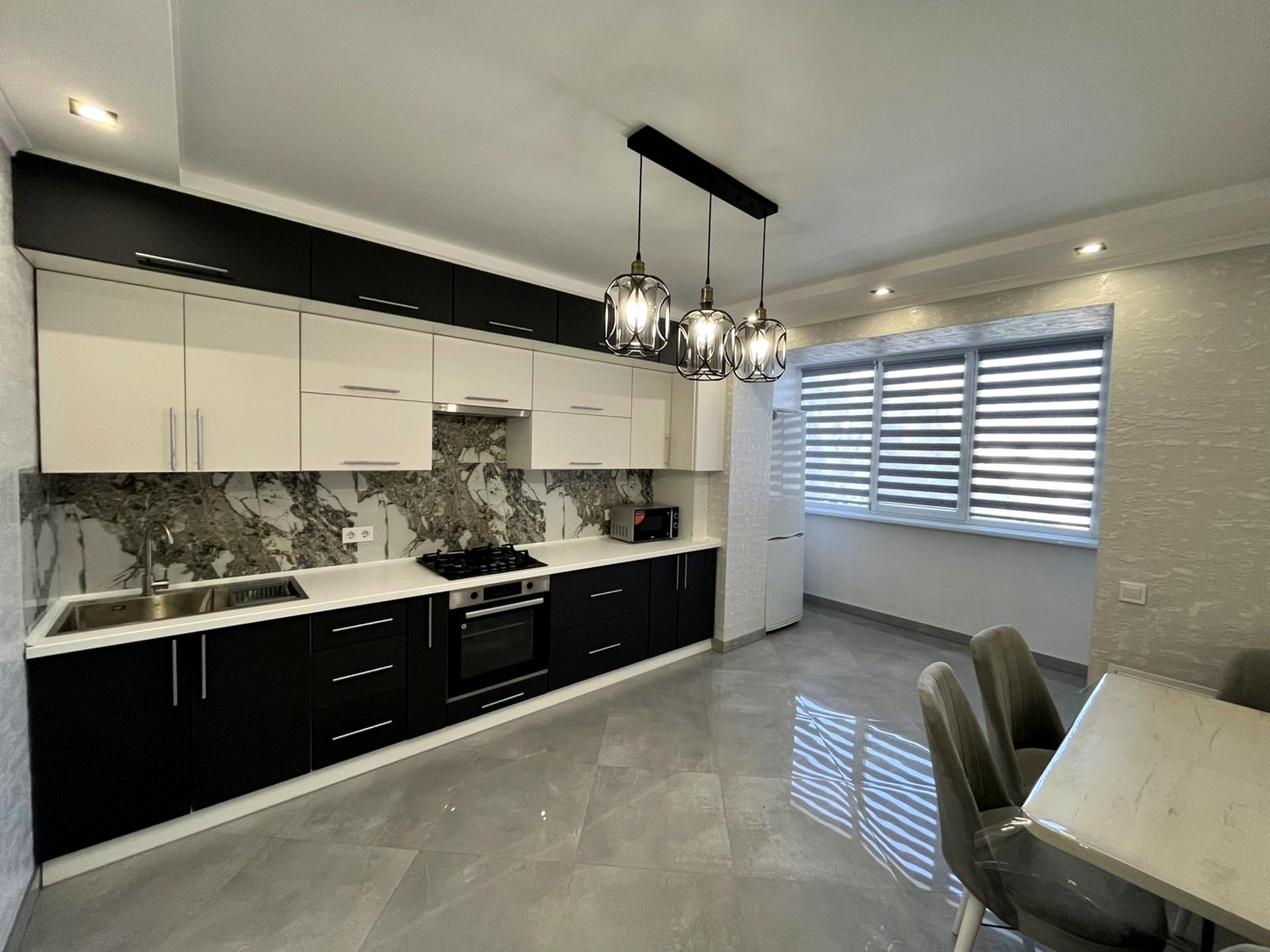 Повністю укомплектована: Залишається абсолютно все! Вмонтована кухня, вся необхідна техніка (варильна поверхня, духова шафа, витяжка, холодильник, пральна машина), меблі (двоспальне ліжко з матрацом, диван, обідній стіл, шафи). Формат "заходь і живи"!